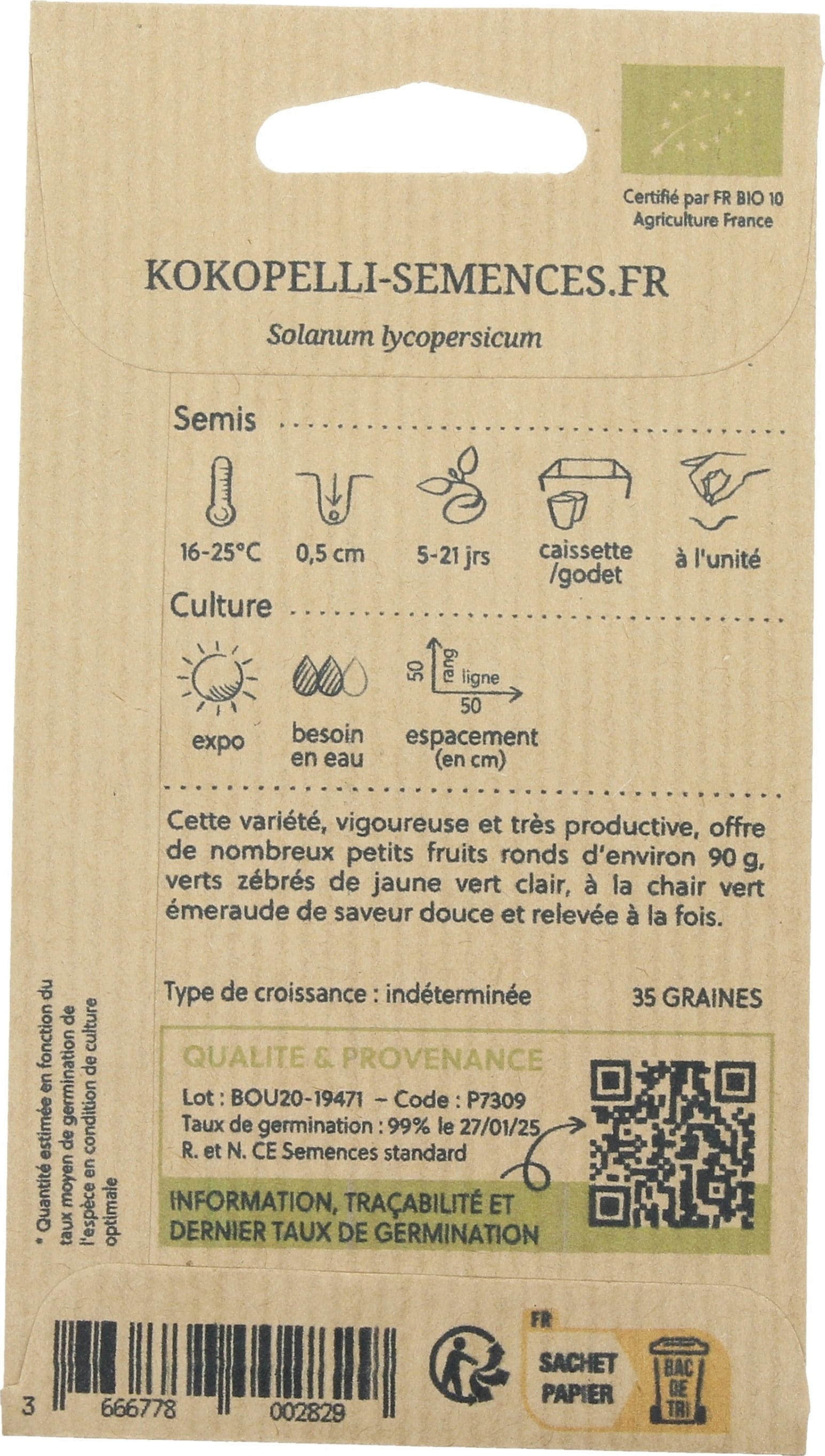 | Fabricante: | Association Kokopelli, 7 Route de Sabarat, Foret de Castagnes, 09290, Le Mas D'Azil, França, professionnels@kokopelli-semences.fr, www.kokopelli-semences.fr |