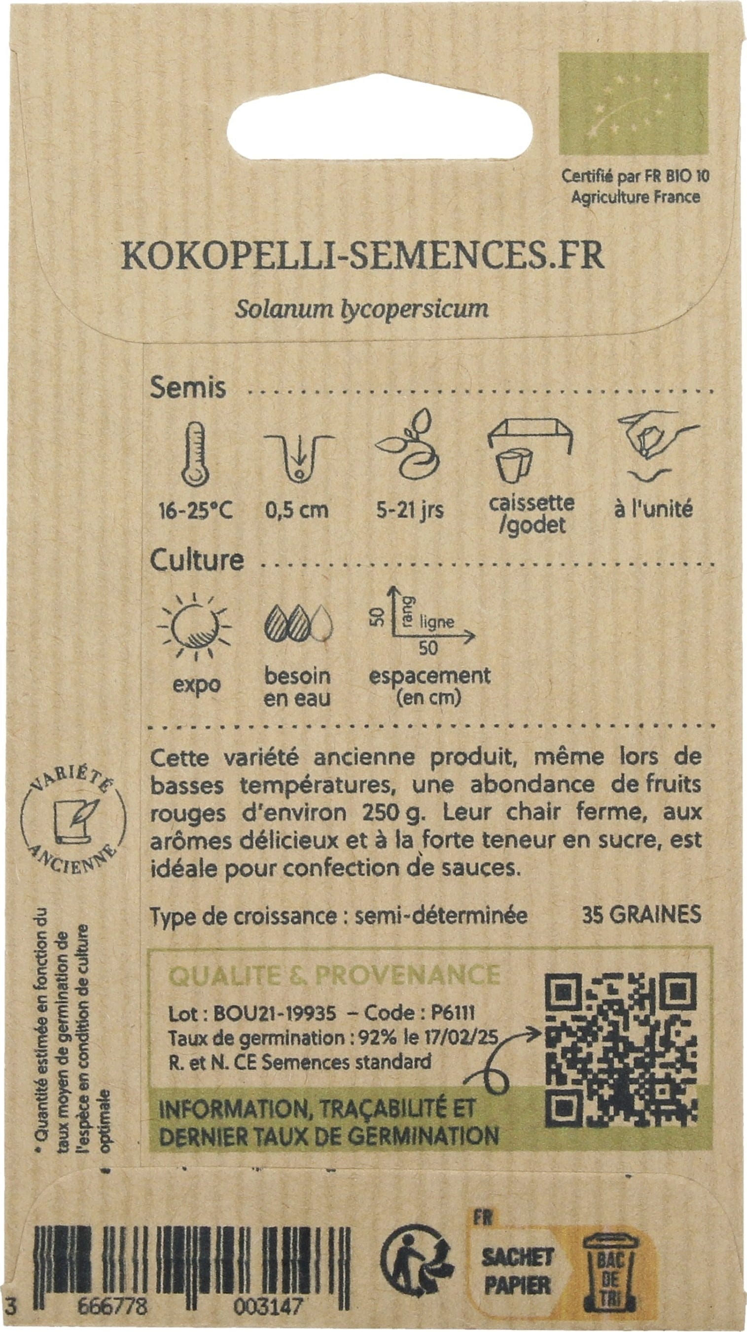 Kokopelli Tomate Vermelho Bio "Marmande", 35 Grãos