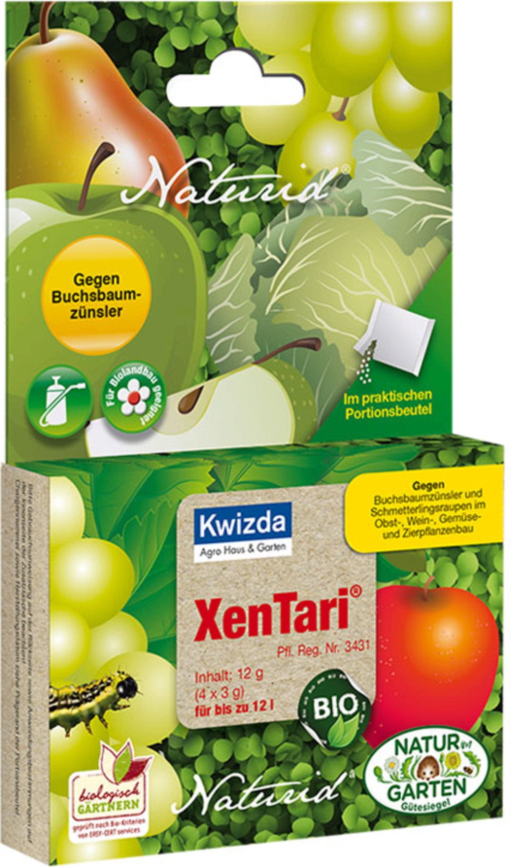 O Naturid XenTari é um inseticida biológico sob a forma de grânulos dispersíveis em água, que combate de forma direcionada lagartas de borboletas – ideal para plantas de fruta, vinha, hortícolas e ornamentais. Destaca-se especialmente no combate à traça do buxo e constitui uma alternativa ecológica aos produtos químicos.