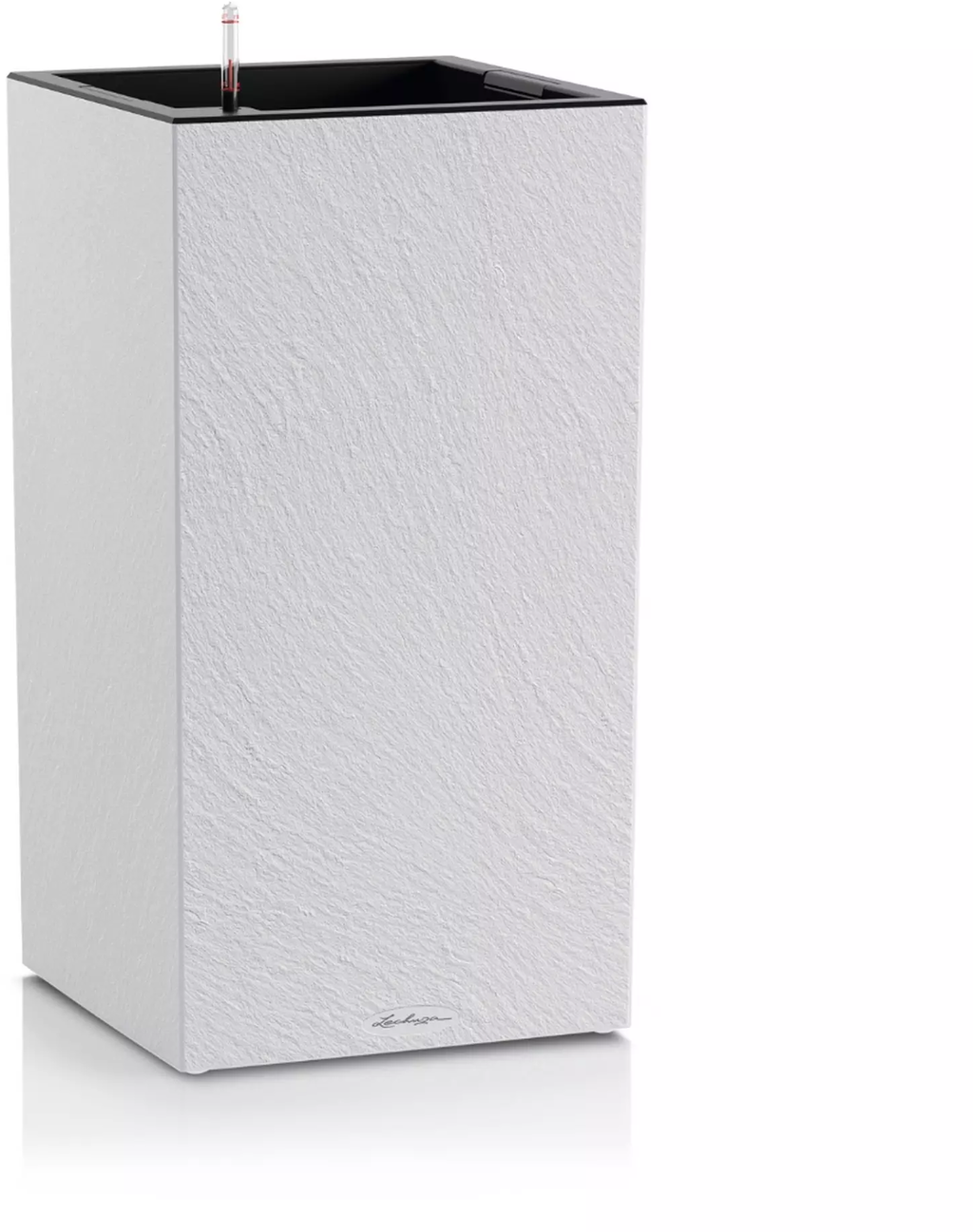 Dê ao seu jardim ou terraço um visual elegante com o vaso CANTO Slatestone. Aqui, o aspeto de ardósia de bom gosto combina-se com um design premiado várias vezes. O vaso oferece espaço suficiente para arranjos de plantas magníficos e, graças ao seu sistema de rega original LECHUZA integrado, torna-se o companheiro perfeito para as suas plantas favoritas.