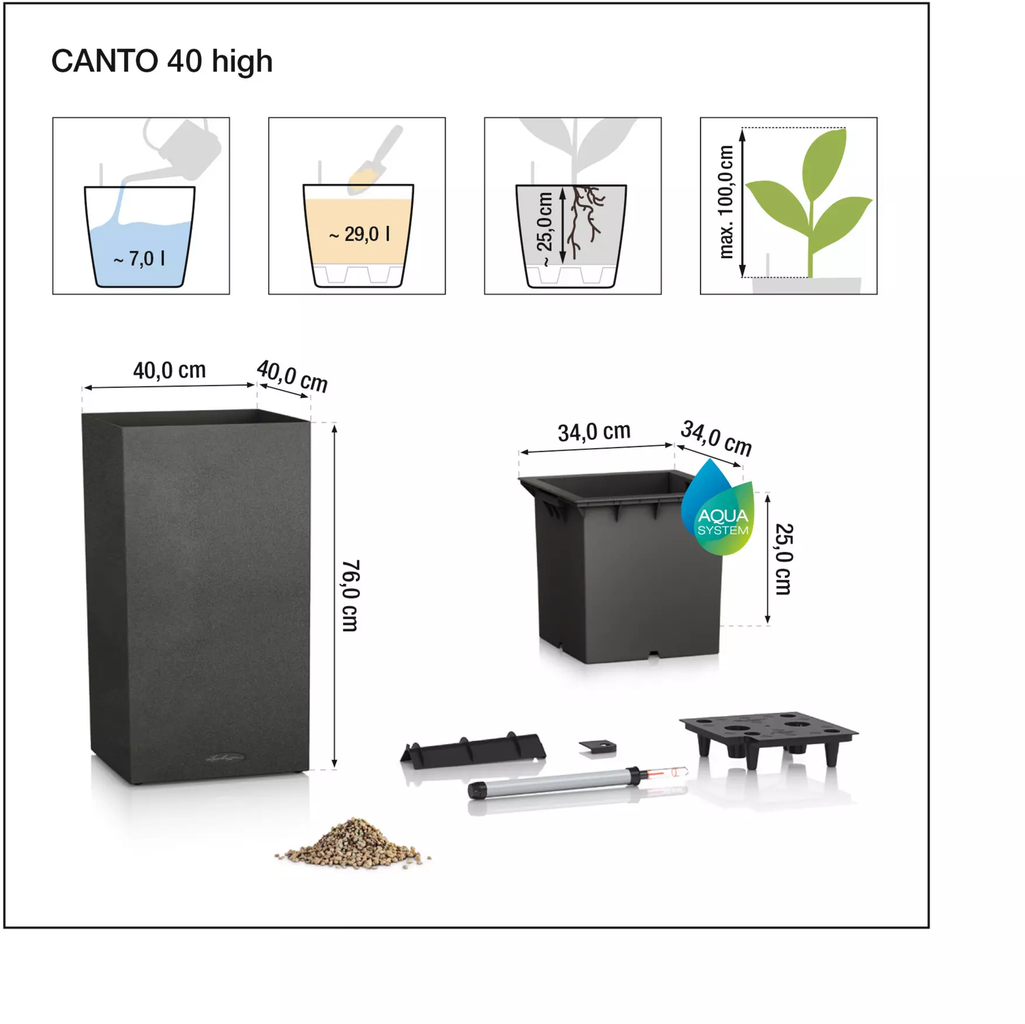• Sistema de rega original LECHUZA integrado fornece às plantas a quantidade ideal de água.