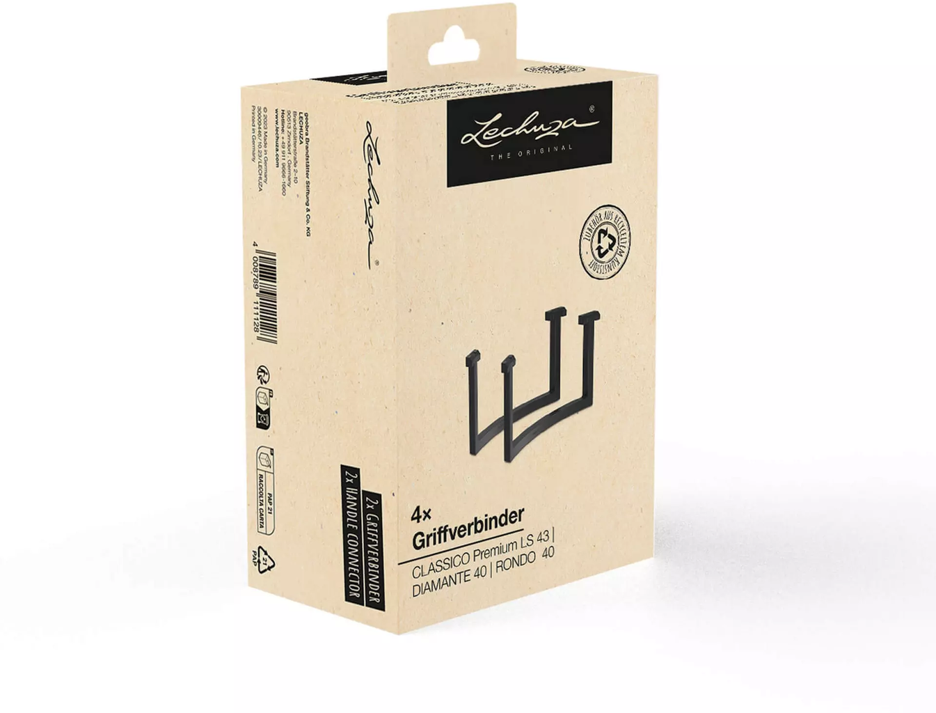 Os conectores são simplesmente montados na estrutura da pega do inserto de plantio (vendido separadamente). Isto permite uma remoção confortável do inserto de plantio, facilitando o cuidado das plantas.