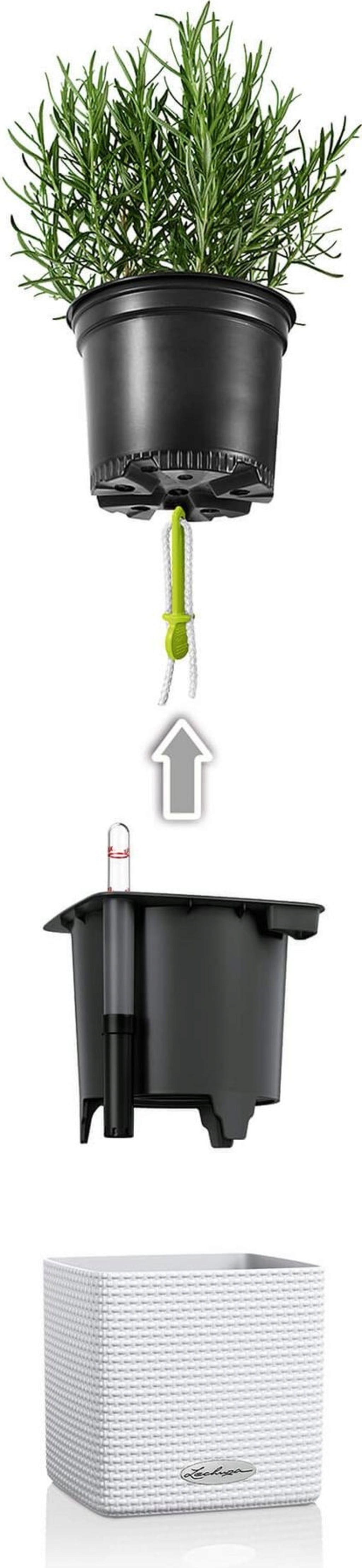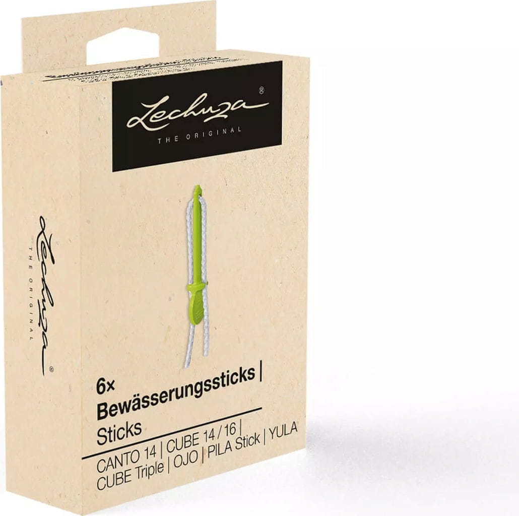 Com os sticks de irrigação, as suas ervas estarão sempre bem cuidadas, sem que tenha de se preocupar constantemente com a rega. São simplesmente inseridos no fundo do vaso de cultivo - não sendo necessário replantar a planta. Em seguida, basta colocar o vaso no recipiente Lechuza correspondente e regar - pronto!