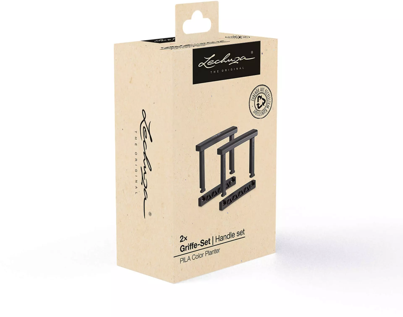 Conteúdo da embalagem: 2 x pegas com logótipo, 2 x pegas sem logótipo, 4 x suportes de pega (suficiente para 2 vasos)