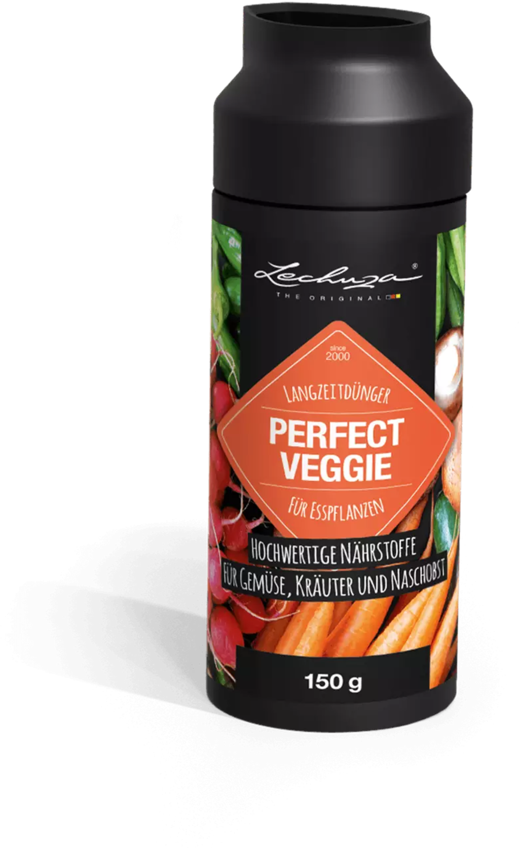 O fertilizante de longa duração 100 % vegano "Perfect Veggie" fornece nutrientes de alta qualidade a legumes, ervas aromáticas e frutas. Para um crescimento vigoroso das plantas e uma colheita deliciosa.