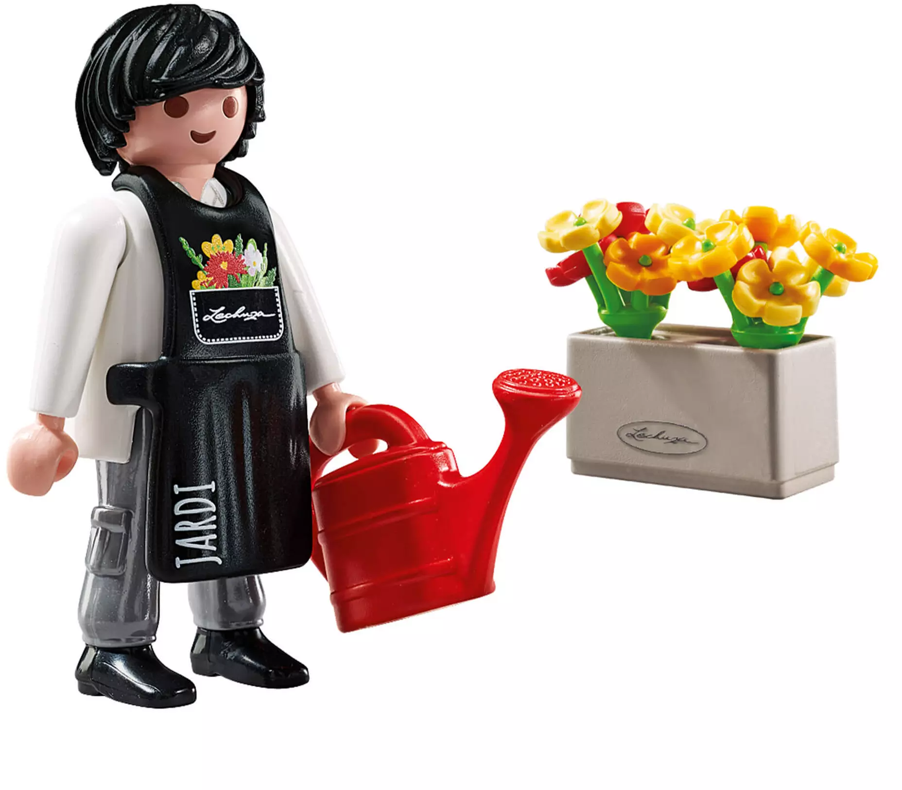 • Figura Playmobil com avental removível, regador, floreira & flores