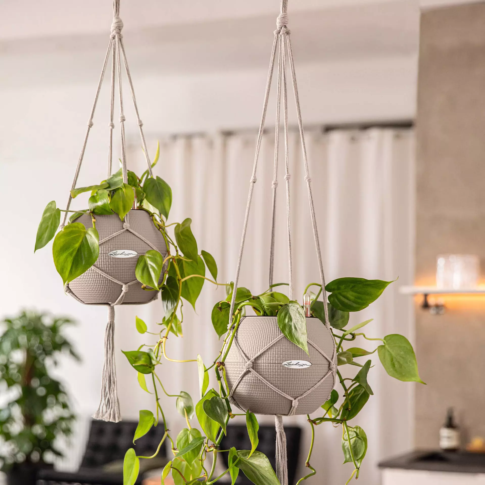 A suspensão em macramé, artisticamente tecida em 100% algodão, não só proporciona uma naturalidade elegante à sua casa, como também permite criar espaços verdes mesmo nas divisões mais pequenas. Crie a sua Urban Jungle ao nível dos olhos ou adicione destaques específicos!