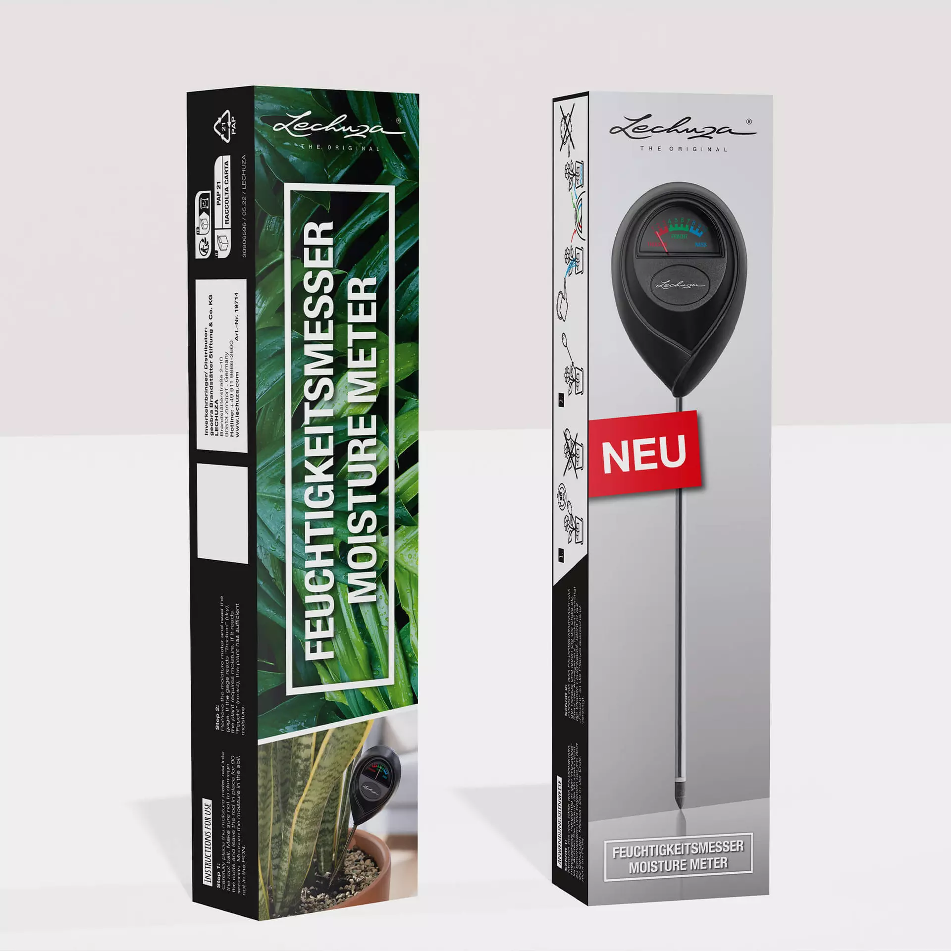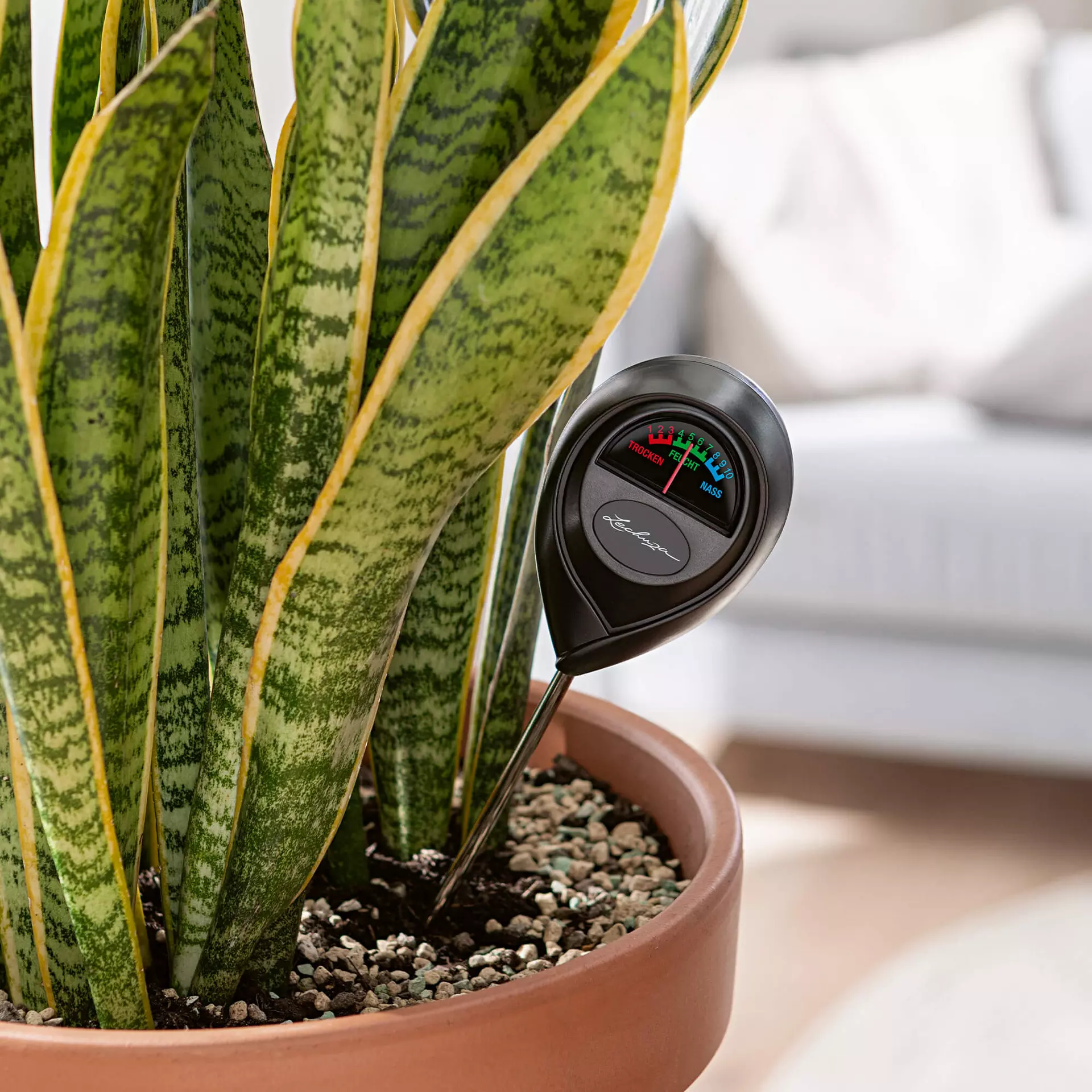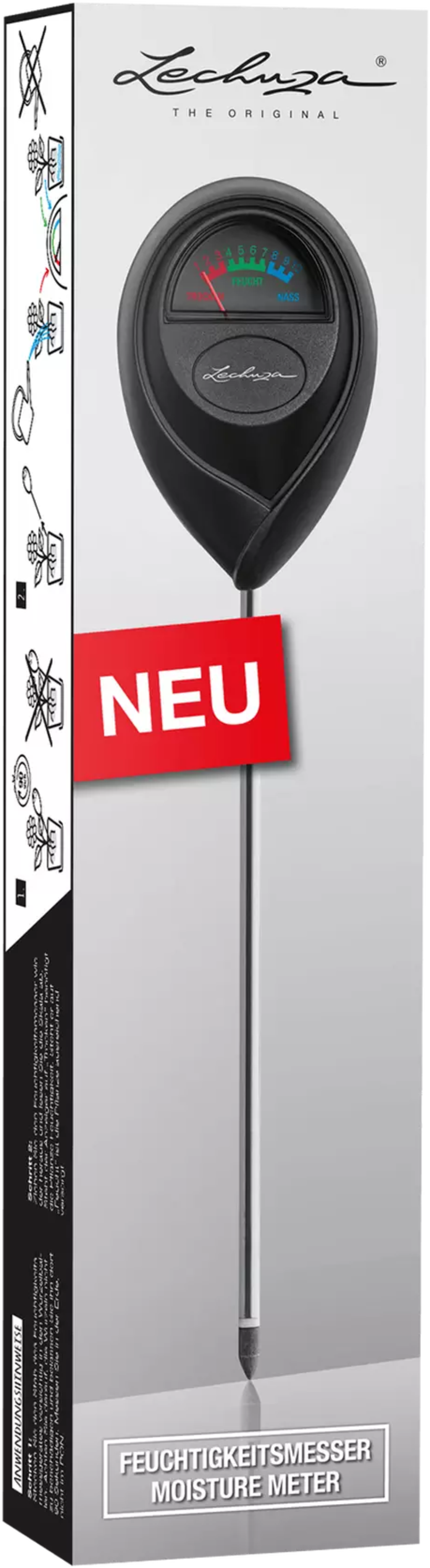 Com o prático medidor de humidade da Lechuza, terá sempre sob controlo as necessidades de água das suas plantas. Quer se trate de uma planta de interior ou de uma planta de vaso grande no terraço, este ajudante inteligente evita a rega insuficiente ou excessiva, mesmo em vasos sem o sistema de rega Lechuza.
