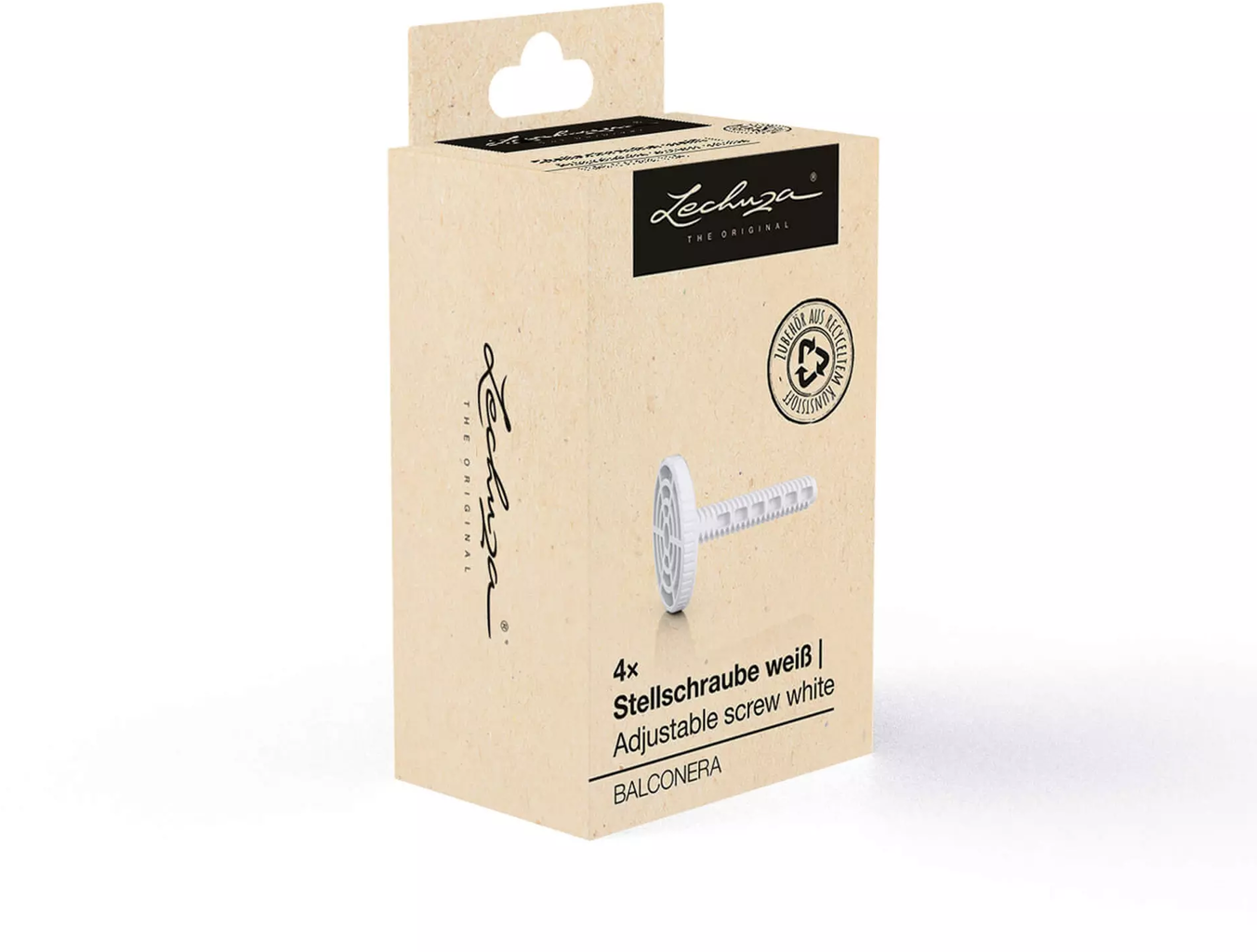 O parafuso de ajuste em branco permite adaptar individualmente a distância entre o vaso e o corrimão. É o acessório adequado para os seguintes vasos da Lechuza:
