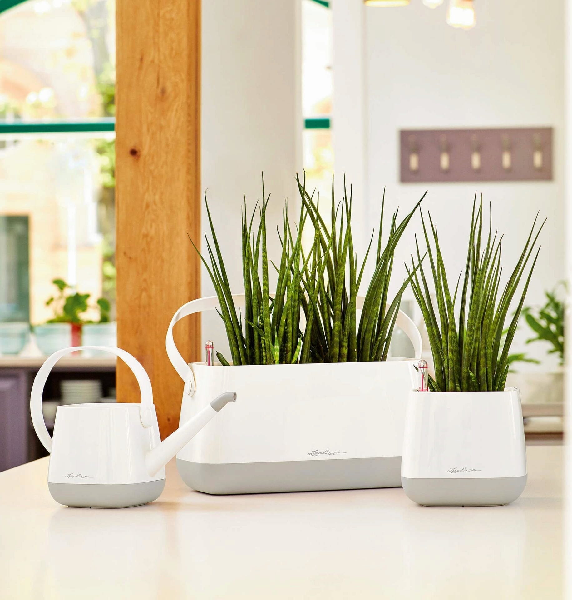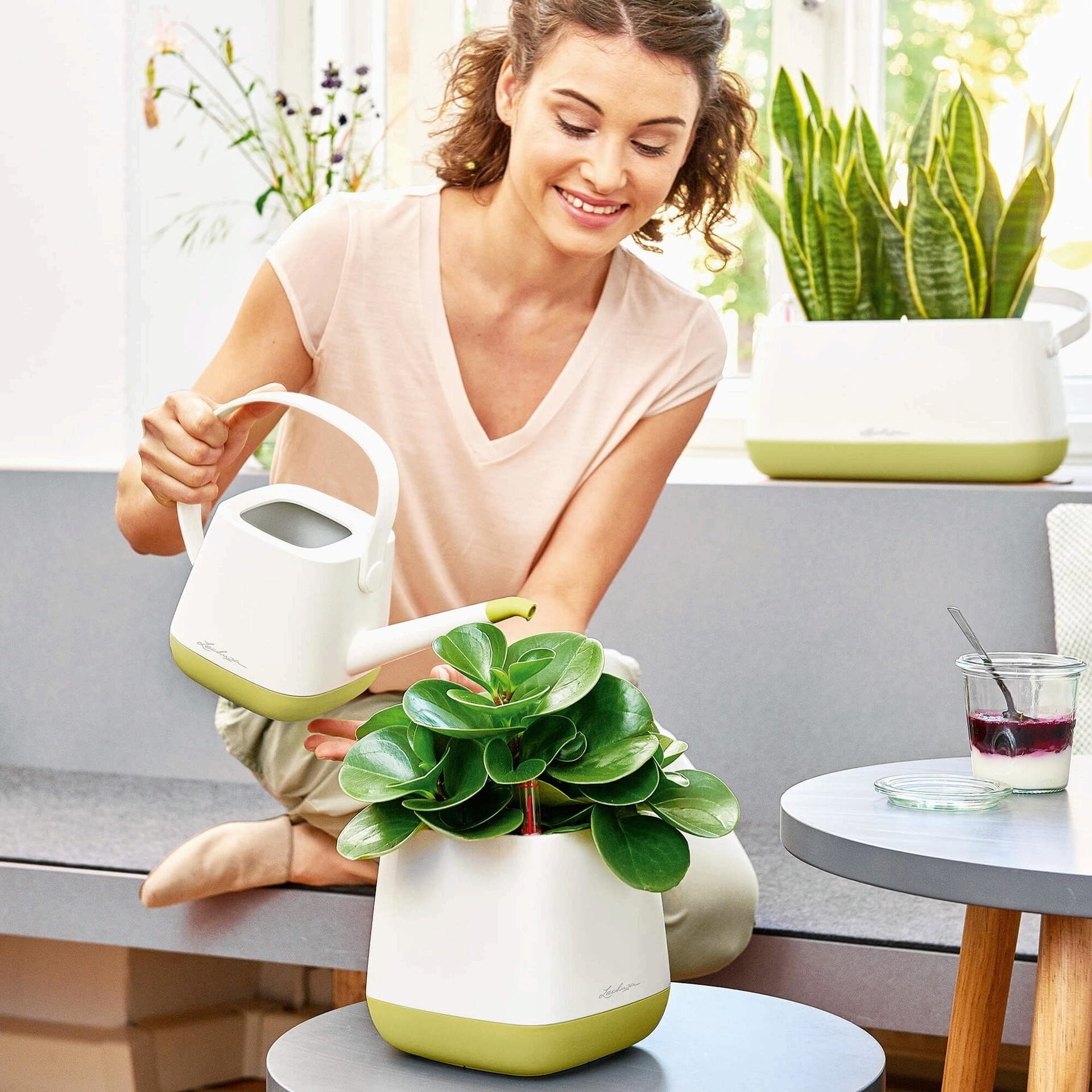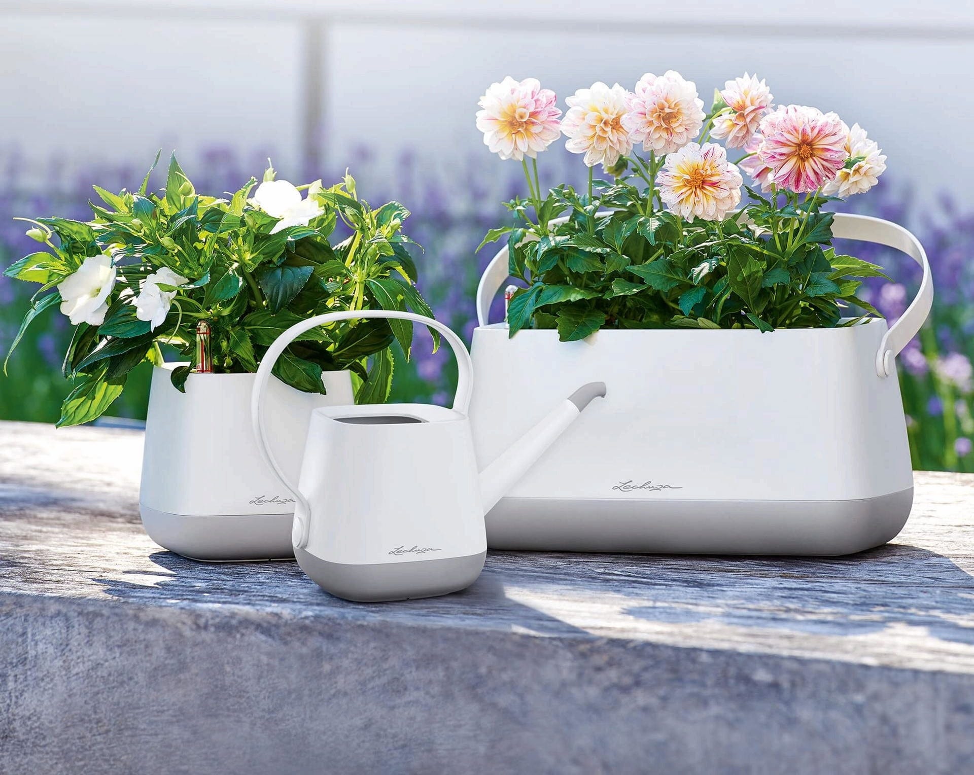 Quer tornar a sua casa ainda mais moderna? Então este regador elegante é a escolha certa. Graças às cores pastel harmoniosas, à superfície mate e à forma clean, adapta-se a qualquer decoração. Uma peça favorita absoluta no meio do seu paraíso de flores.