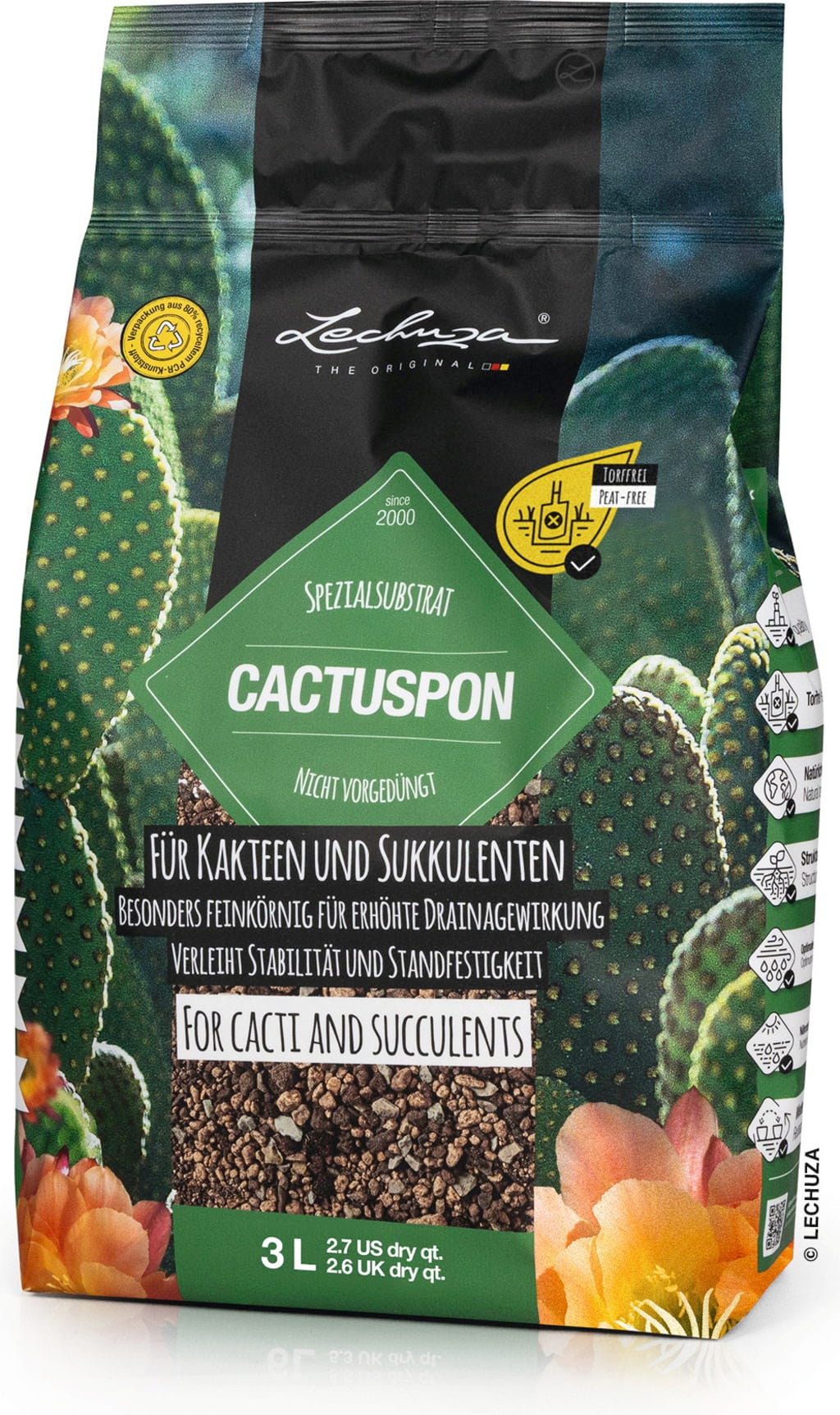 O substrato especial puramente mineral é perfeitamente adaptado às necessidades de cactos e suculentas.
