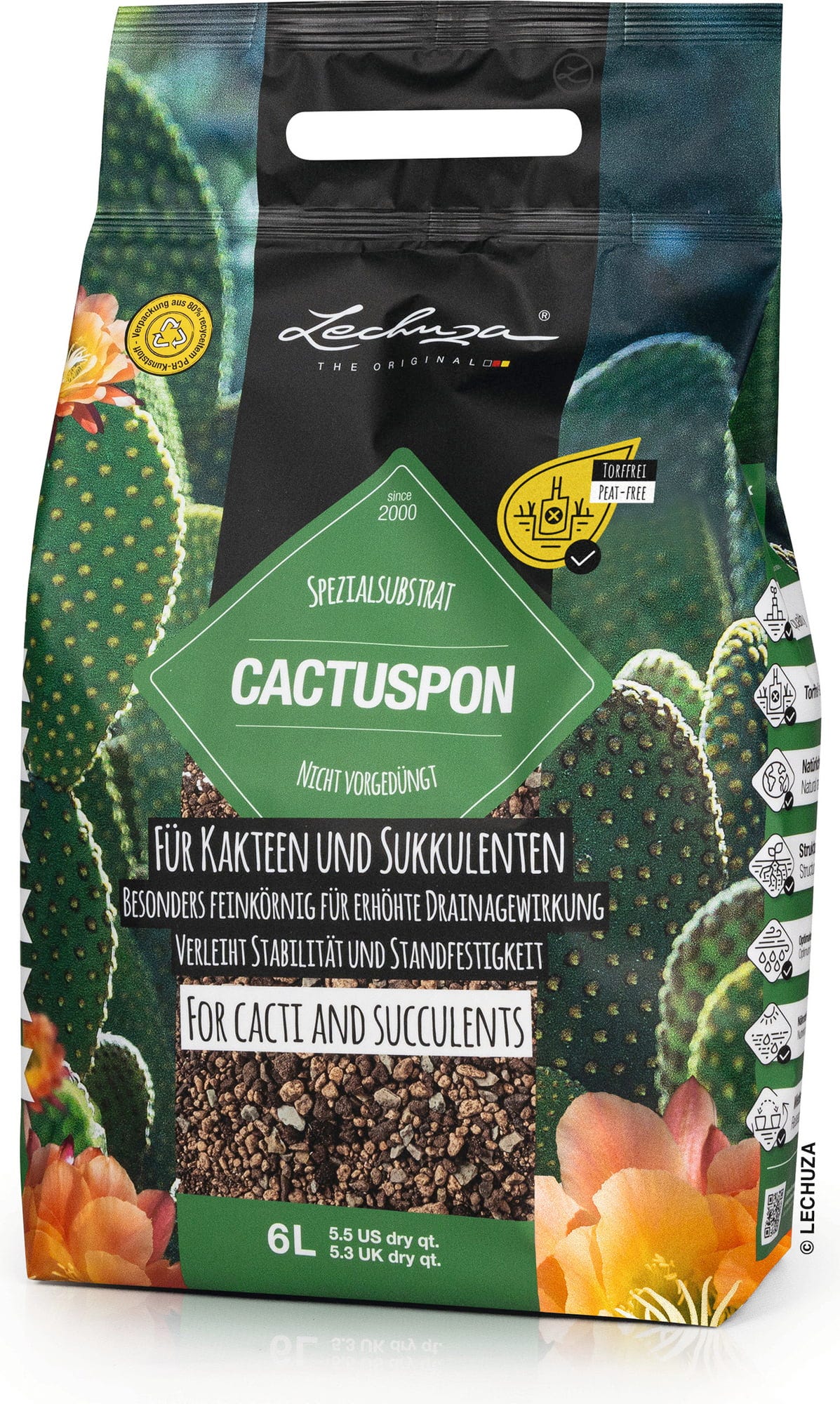 O substrato especial puramente mineral é perfeitamente adaptado às necessidades de cactos e suculentas.