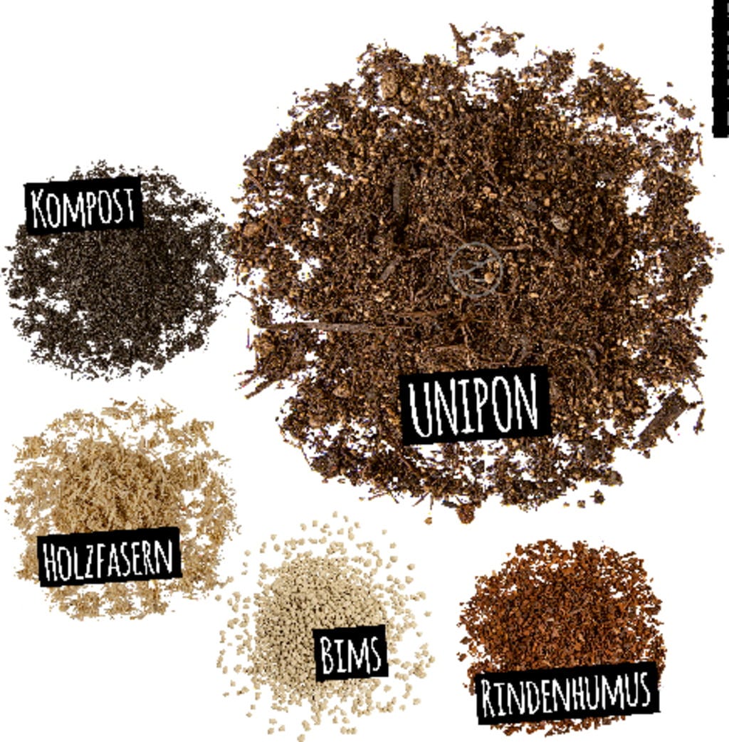 Composição: Aparas de madeira, fibras de madeira, composto, componentes minerais de pedra-pomes, fertilizante especial para plantas de exterior