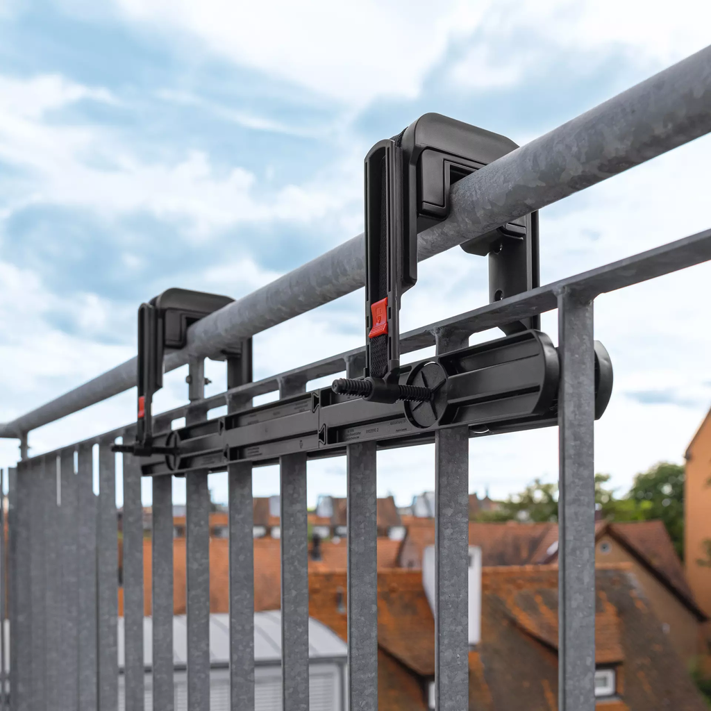 Dica: Para varandins com grande espaçamento entre barras, recomenda-se um suporte adicional (vendido separadamente). Este evita o deslizamento e oferece estabilidade extra.