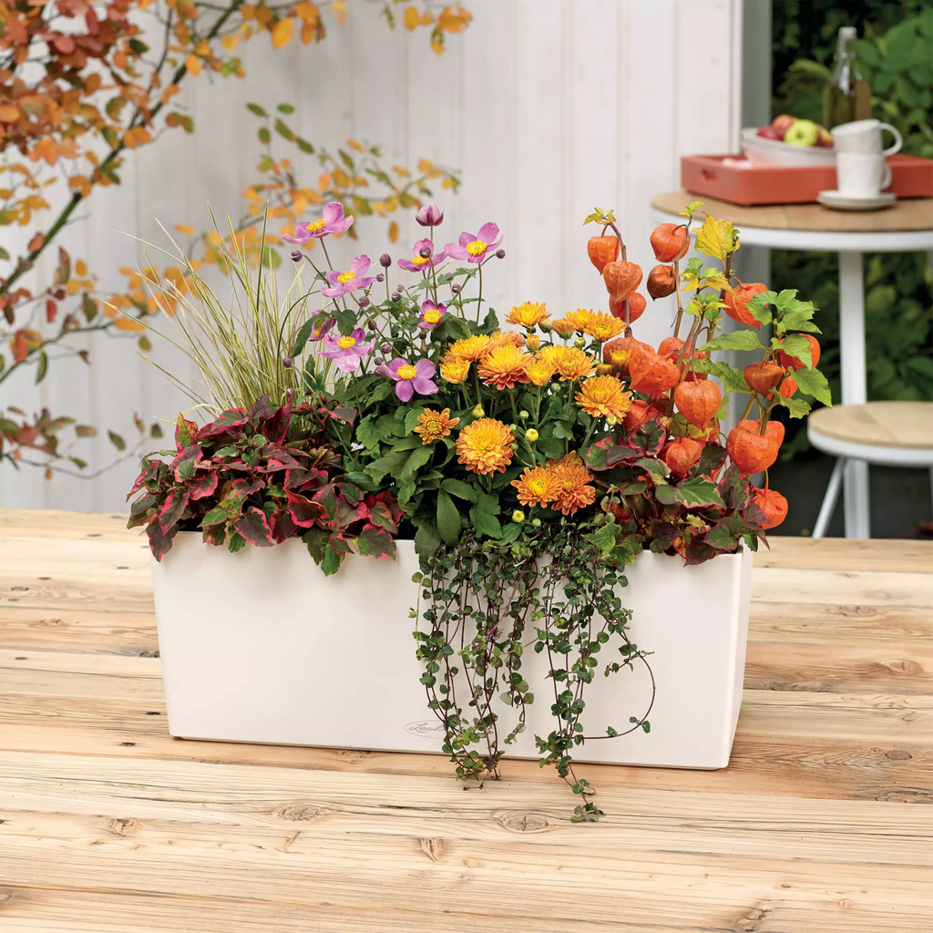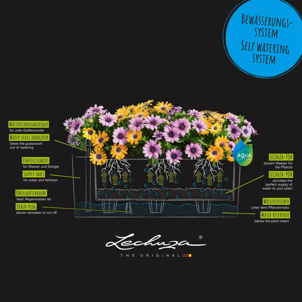 O elegante vaso "Balconera Color" da Lechuza destaca as flores com mestria e impressiona, acima de tudo, pelas suas propriedades práticas incomparáveis que fazem o coração de qualquer jardineiro bater mais depressa. Quer seja colocado de forma independente ou fixado ao corrimão da varanda com o suporte disponível separadamente - esta floreira feita de polipropileno resistente aos raios UV é sempre um elemento de destaque elegante.