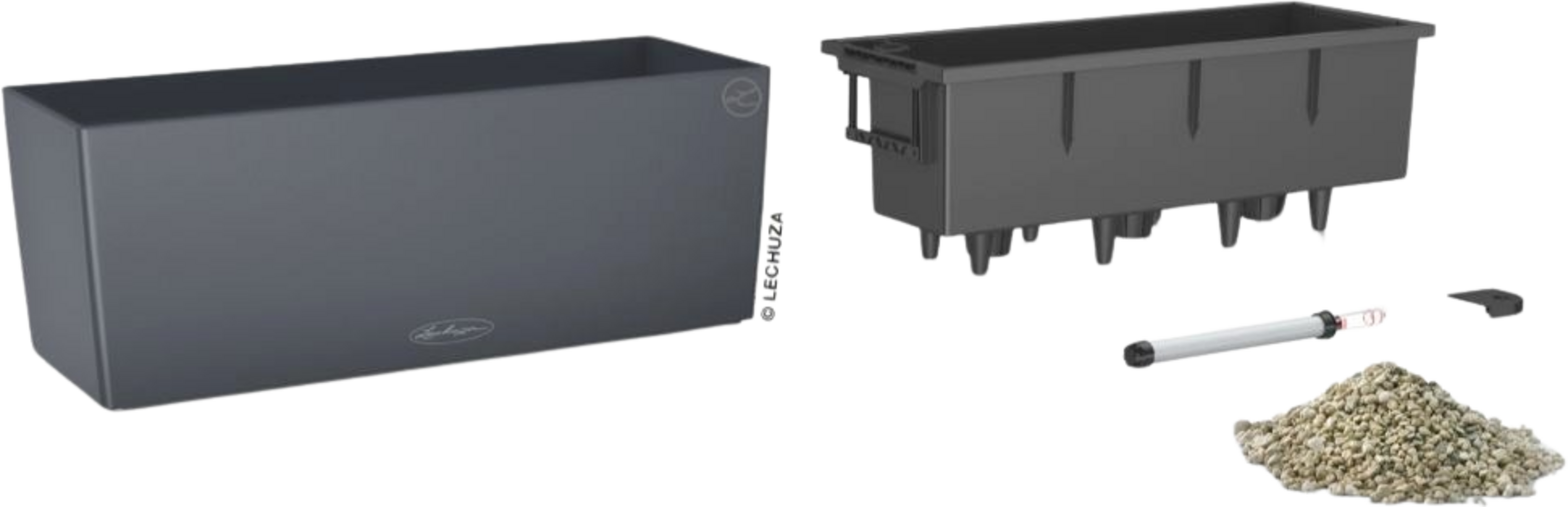 A floreira BALCONERA Color 50 da LECHUZA não deixa as suas plantas murcharem, mesmo nos dias de maior calor. Graças ao grande reservatório de água (3 litros), elas recebem hidratação suficiente. Plante de forma simples e cómoda no suporte removível, no chão ou numa mesa, e depois coloque-o na floreira. Além disso, a Balconera Color 50 convence pelo seu design atraente.