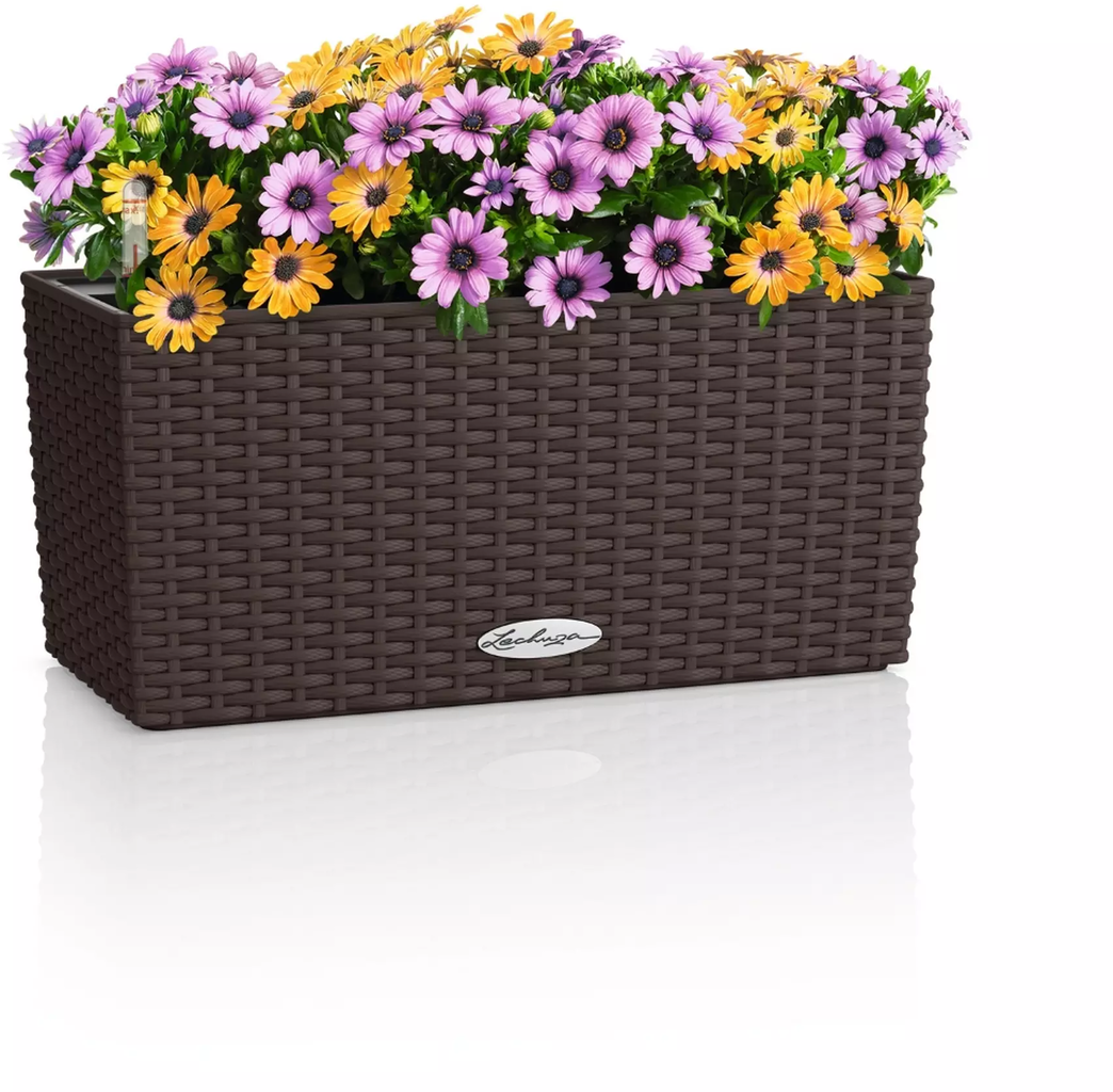 O elegante vaso "Balconera Cottage" da Lechuza destaca habilmente as suas flores com a sua atraente estrutura de superfície. Além disso, impressiona sobretudo pelas suas propriedades práticas, que fazem bater mais forte o coração de qualquer jardineiro. Quer seja colocado de forma independente ou fixado ao corrimão da varanda com o suporte disponível separadamente - esta floreira fabricada em polipropileno resistente aos raios UV é sempre um elemento de destaque elegante.