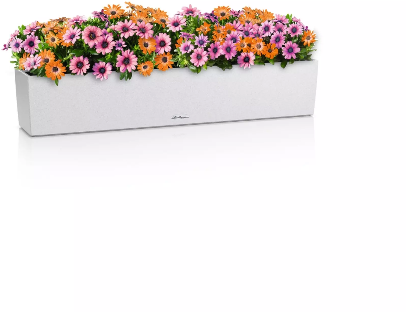 O vaso purista "Balconera Stone" da Lechuza destaca habilmente as suas flores com a sua atraente estrutura de superfície. Além disso, impressiona sobretudo pelas suas propriedades práticas, que farão bater mais forte o coração de qualquer jardineiro. Quer seja colocado de forma independente ou fixado ao corrimão da varanda com o suporte disponível separadamente - esta floreira fabricada em polipropileno resistente aos raios UV é sempre um elemento de destaque elegante.