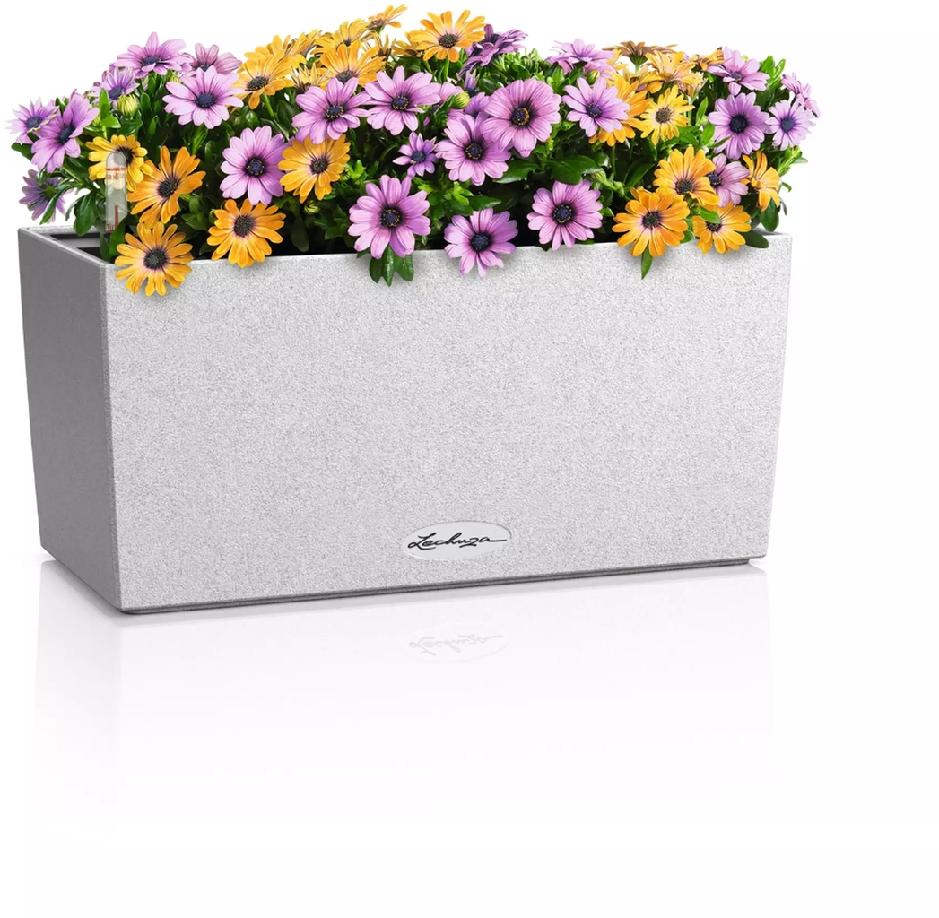O vaso purista "Balconera Stone" da Lechuza destaca habilmente as flores com a sua atraente estrutura de superfície. Além disso, impressiona sobretudo pelas suas propriedades práticas que fazem bater mais forte o coração de qualquer jardineiro. Quer seja colocado de forma independente ou fixado ao corrimão da varanda com o suporte disponível separadamente - o vaso fabricado em polipropileno resistente aos raios UV é sempre um elemento de destaque elegante.