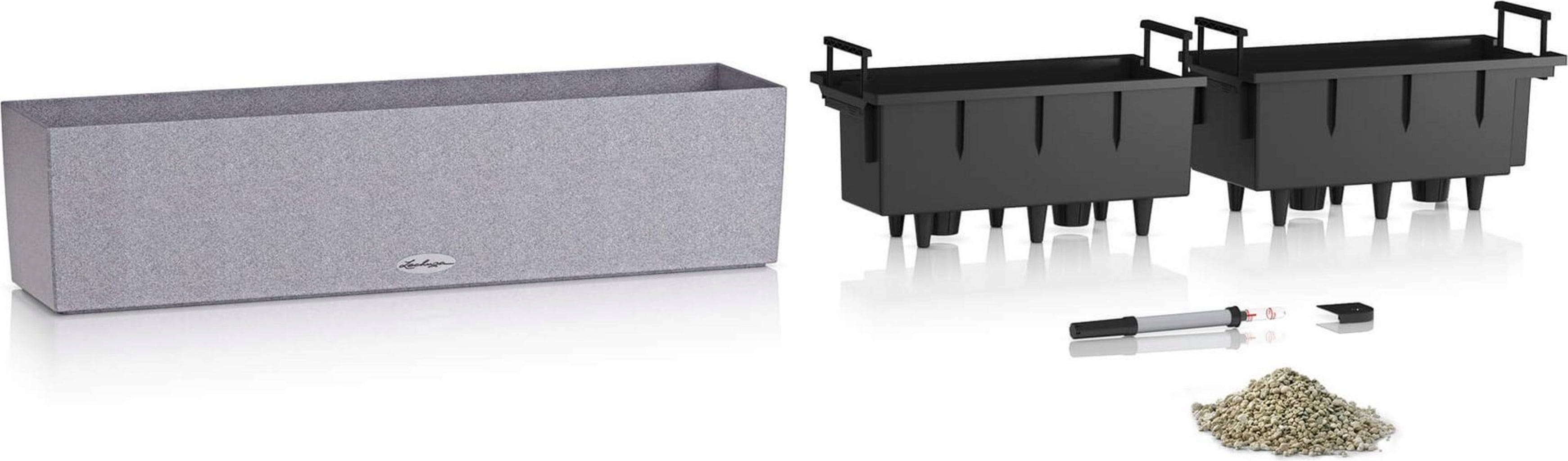 Para uma varanda graciosa, são necessárias plantas graciosas - e estas crescem de forma particularmente bela no "Balconera Stone". O vaso é fabricado em plástico de alta qualidade e, por isso, é fácil de transportar. Graças ao sistema de irrigação integrado, o fornecimento ideal de água para as plantas está sempre garantido. Isto elimina a necessidade de regas frequentes e deixa mais tempo para o descanso e relaxamento.