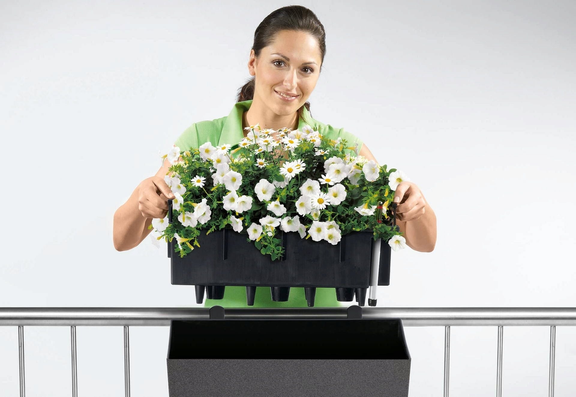 NOTA: Para fixar o vaso de forma ideal ao corrimão da varanda, são necessários suportes especiais - estes não estão incluídos no volume de fornecimento, mas podem ser encomendados separadamente em "Acessórios".