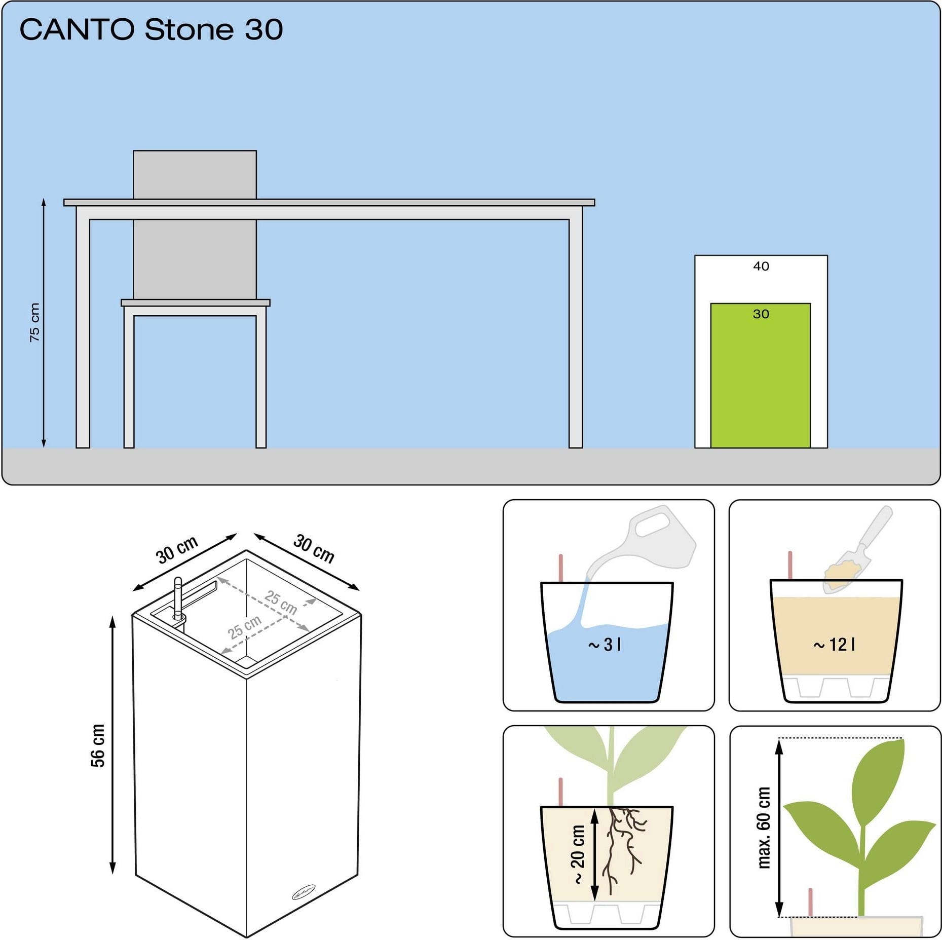 comentários em português para Lechuza Vaso CANTO Stone high 40
