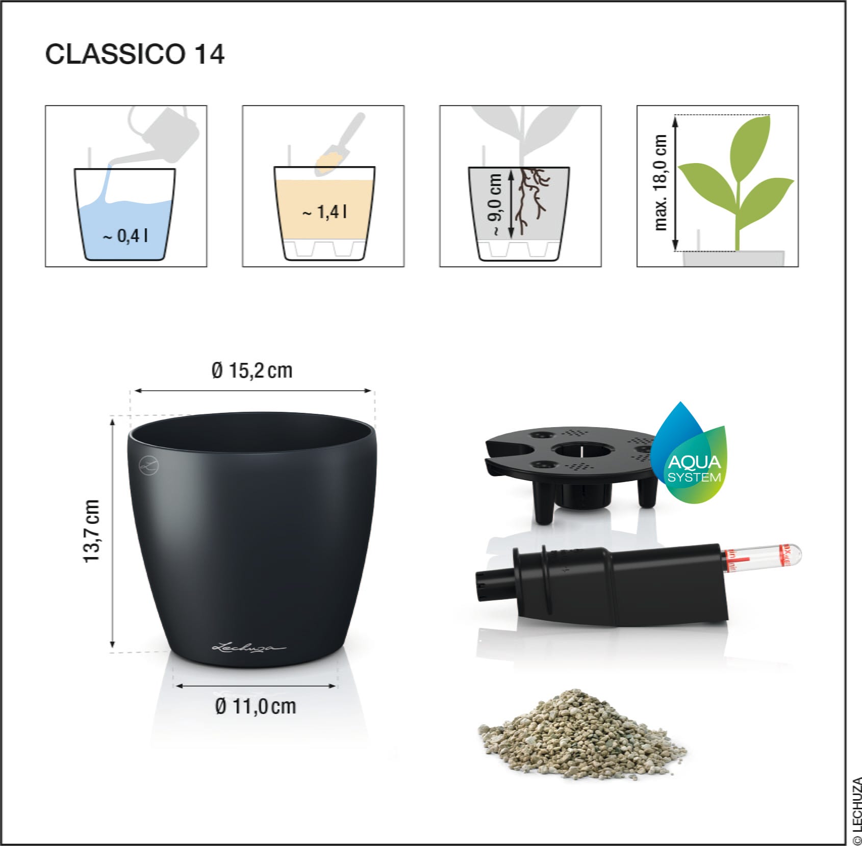 - Substrato LECHUZA-PON como camada de drenagem