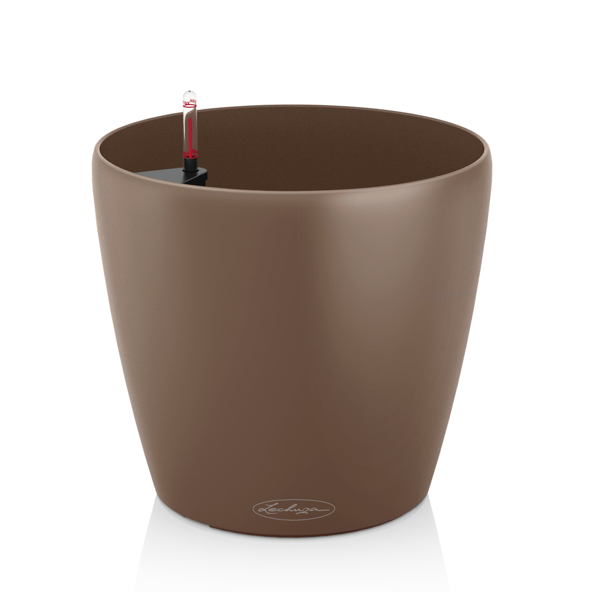 Todos os vasos Lechuza convencem, acima de tudo, pelo sistema único de irrigação de solo. O reservatório de água integrado permite o fornecimento ideal da planta. Um indicador do nível de água mostra exatamente quando é altura de regar novamente.