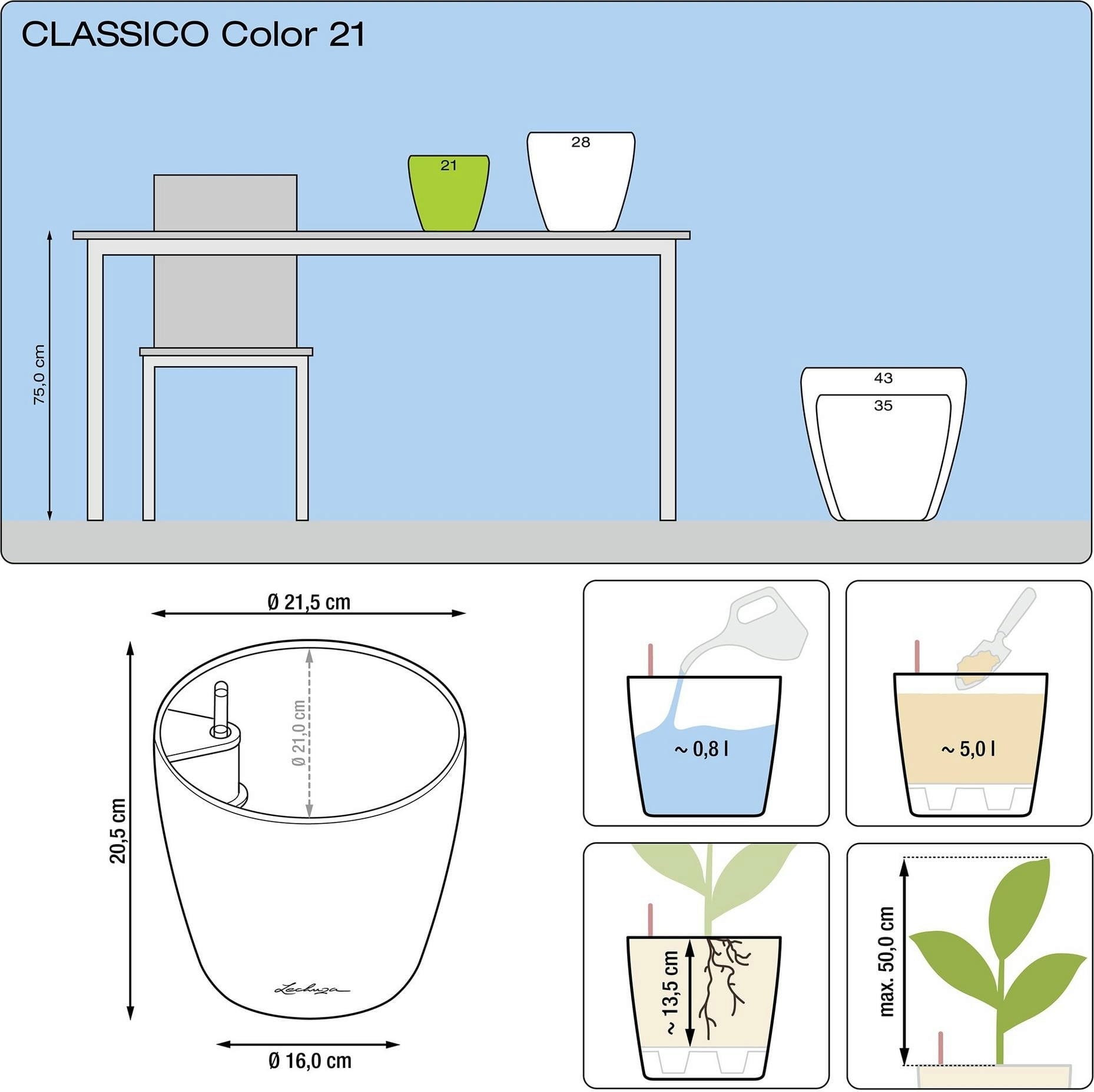 O vaso Classico Color 21 da Lechuza destaca as suas plantas de forma particularmente bela, tanto no interior como no exterior. O design intemporal integra-se maravilhosamente em qualquer ambiente - seja na sala de estar e de jantar, no terraço ou na varanda.