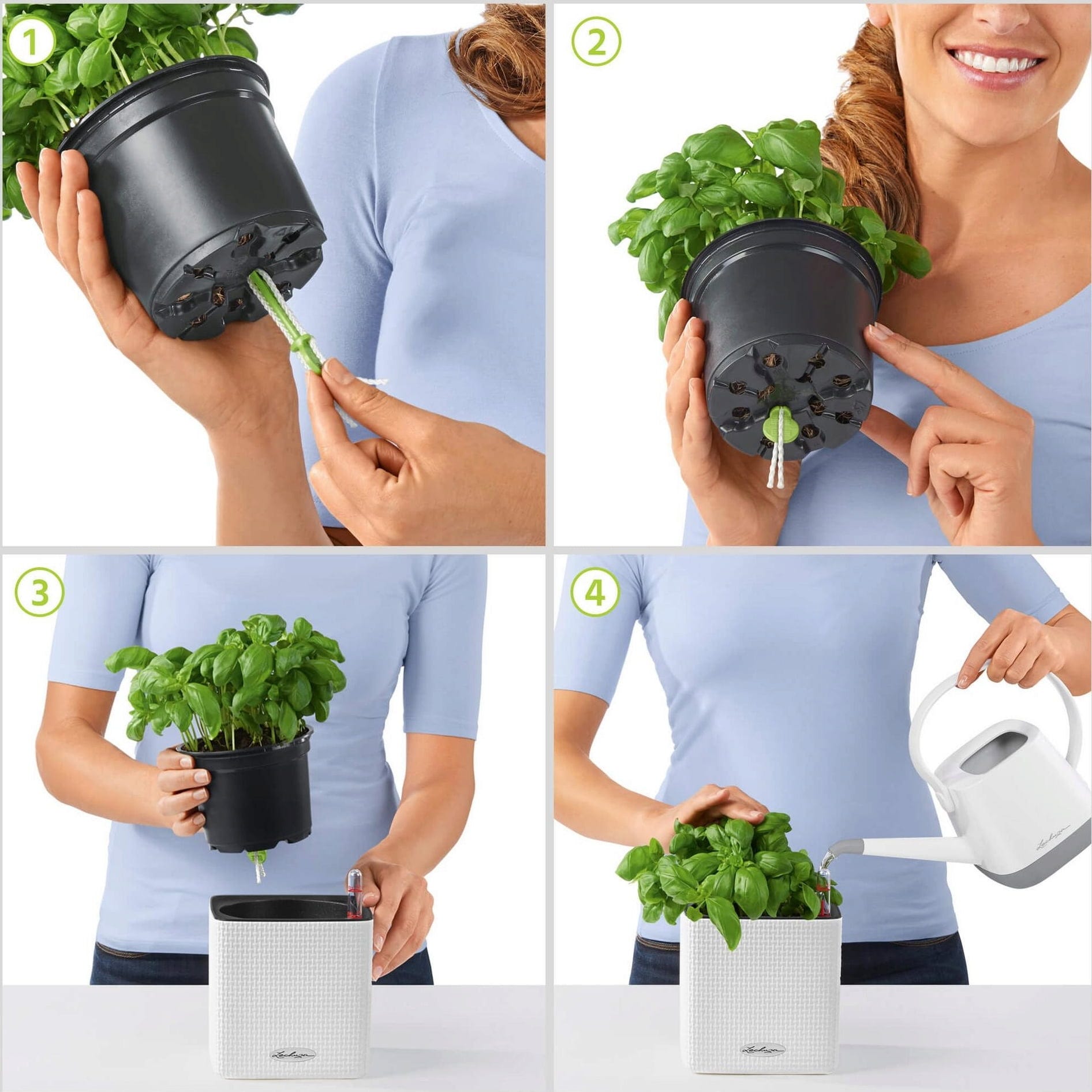As plantas cuidam de si mesmas de forma independente e fiável através do sistema de irrigação com stick integrado.