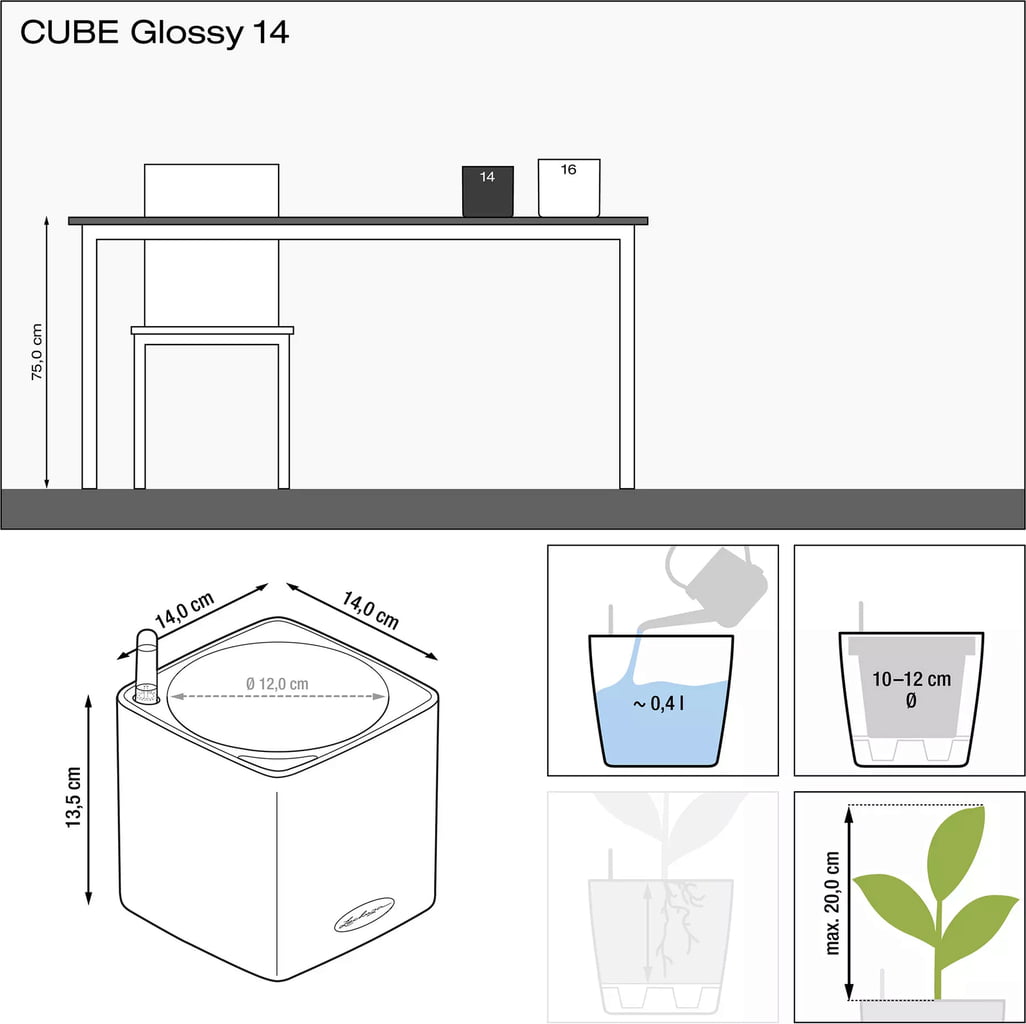 Lechuza Vaso de mesa CUBE Premium CAT 14, Branco brilhante