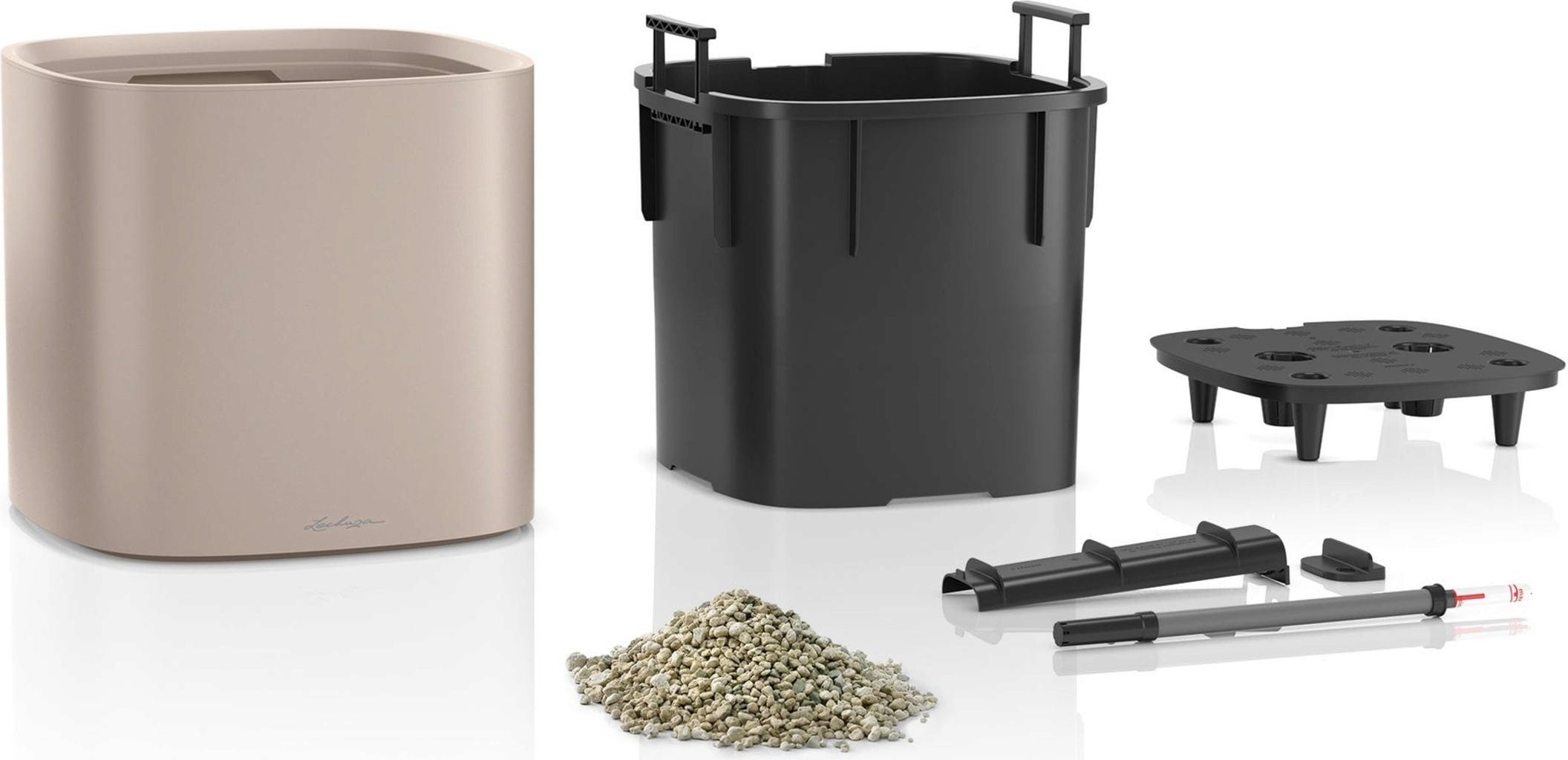 - Sistema de irrigação original Lechuza com grande reservatório de água \n\t