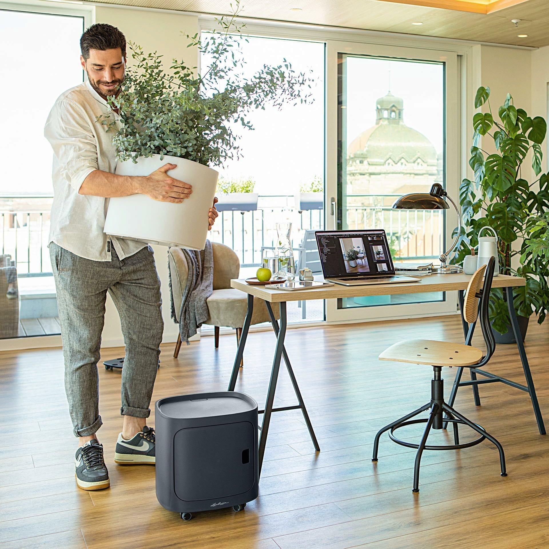 Lechuza PILA é o sistema modular inteligente que combina vasos elegantes com módulos de armazenamento práticos. Até três elementos podem ser facilmente empilhados, garantindo muito verde em espaços limitados - seja no terraço ou nas salas de estar. As cores e os módulos podem ser combinados a gosto, adaptando-se a qualquer estilo de decoração.