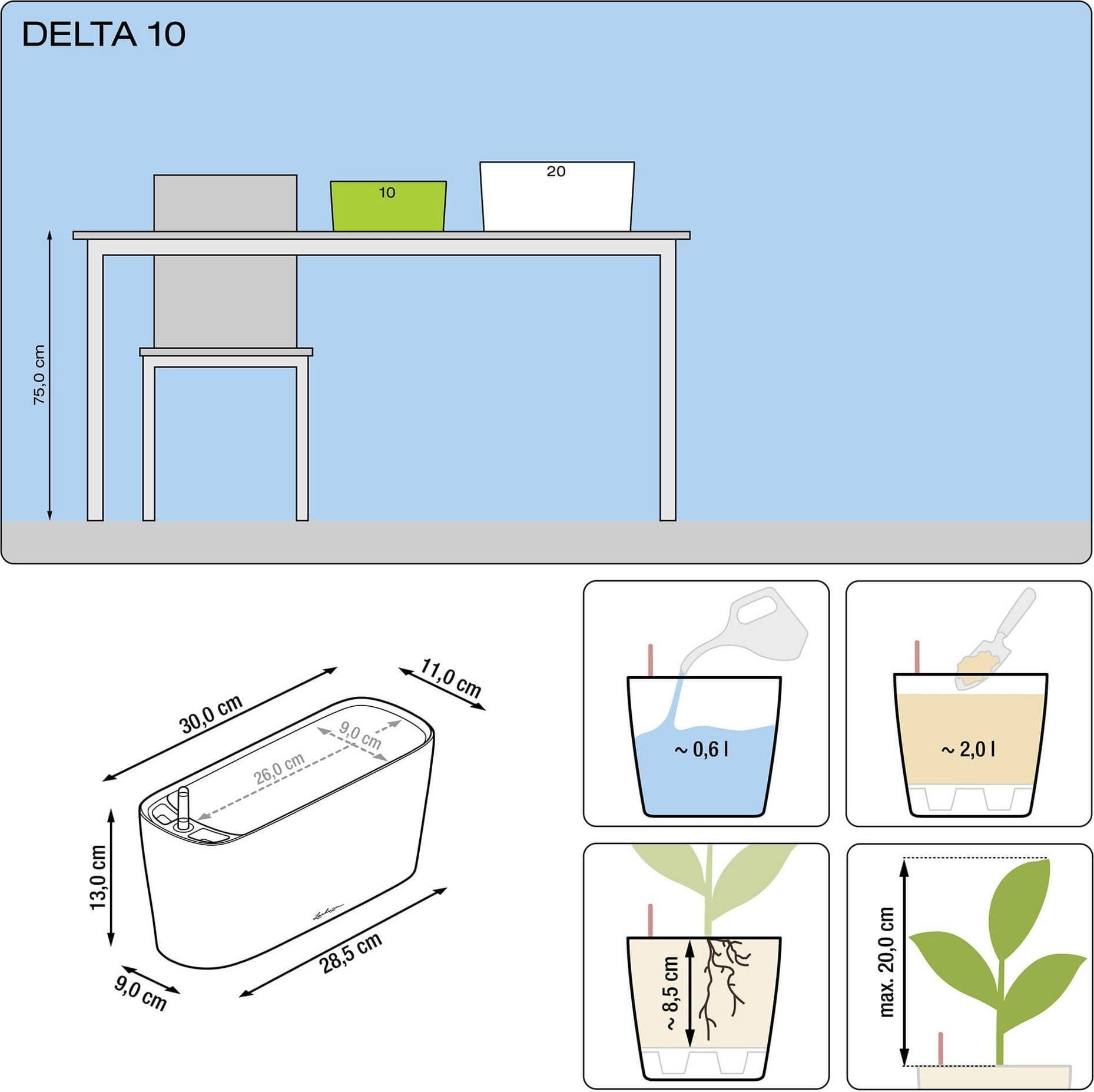 comentários em português para Lechuza Vaso DELTA 10 Premium