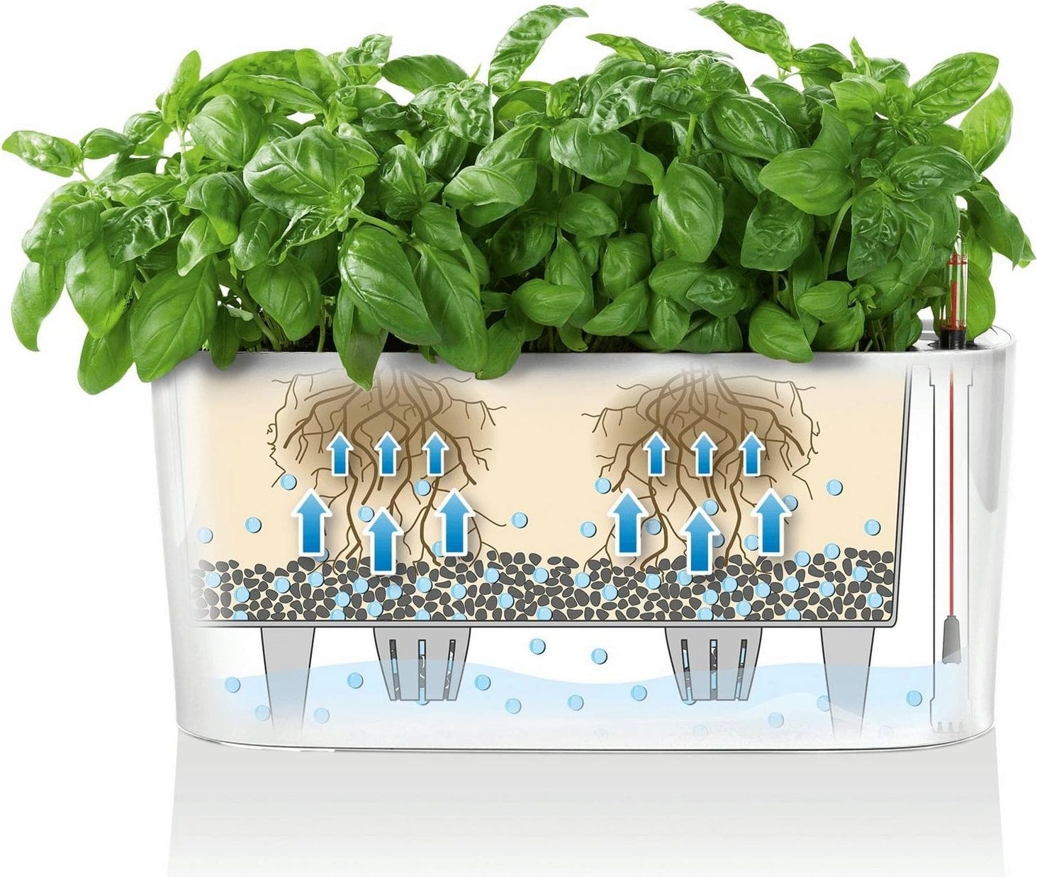 Um indicador do nível de água mostra exatamente quando é altura de regar novamente. Assim, nada será esquecido.