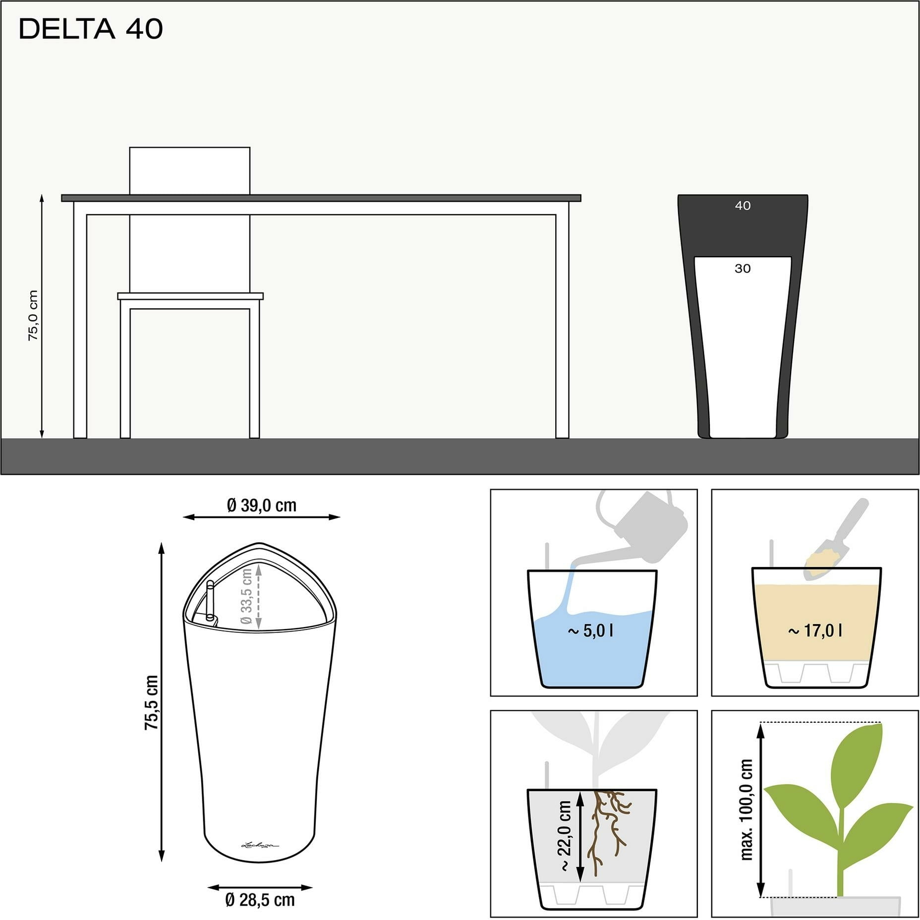 comentários em português para Lechuza Vaso DELTA Premium 40