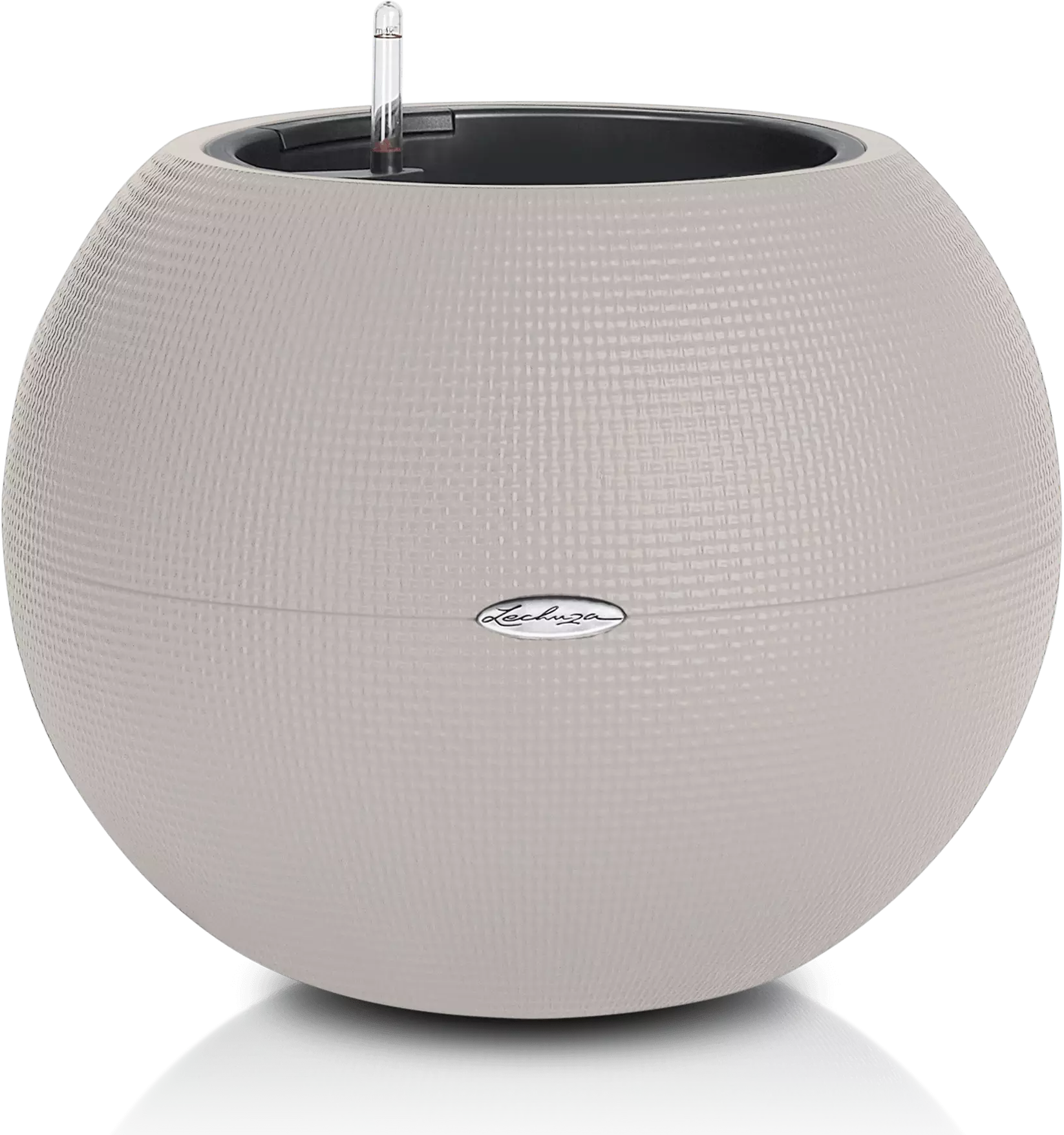 Com o PURO Color 50 da Lechuza, existe finalmente um vaso grande em forma esférica - distinguido com o Red Dot Design Award! A estrutura tecida discreta em castanho areia simples não só lhe confere um aspeto elegante, como também destaca habilmente até as plantas mais altas.