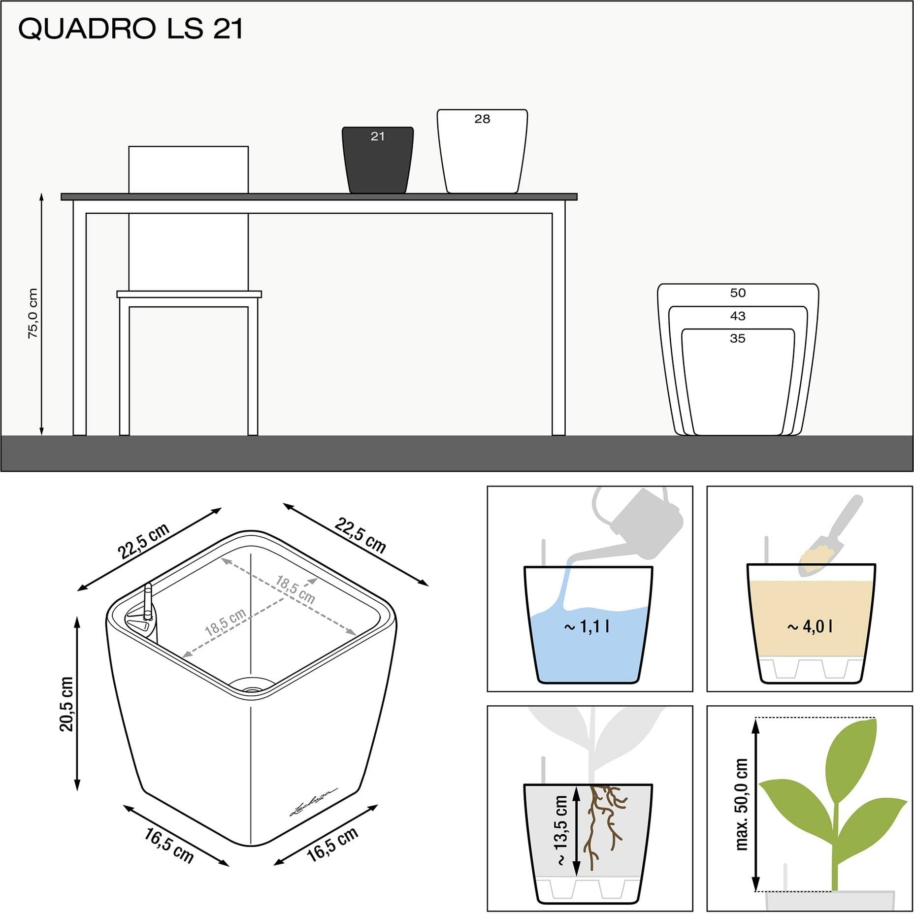Lechuza Vaso QUADRO Premium LS 21, Cinza-escuro brilhante