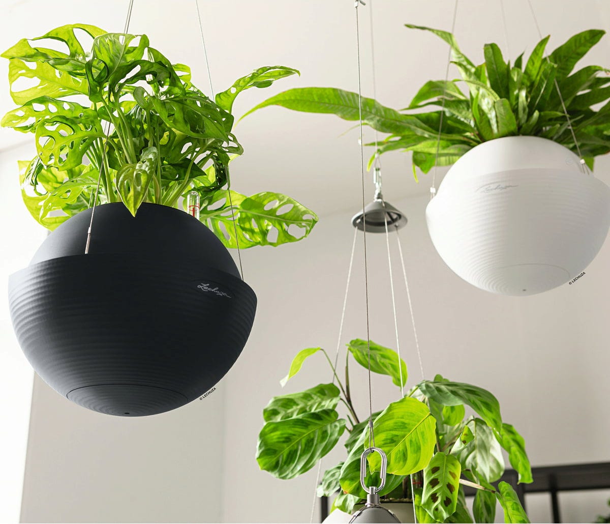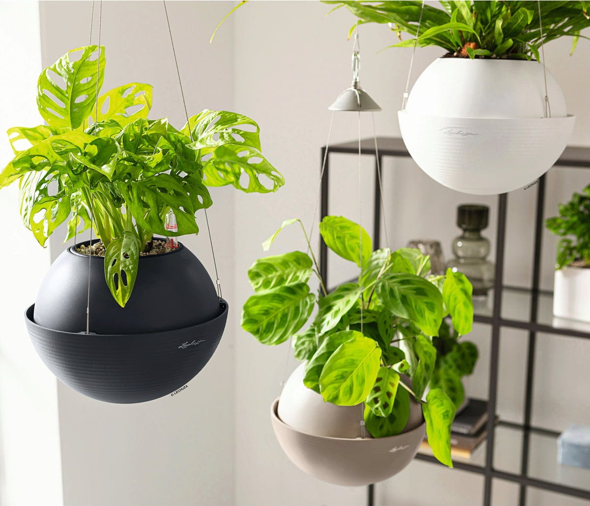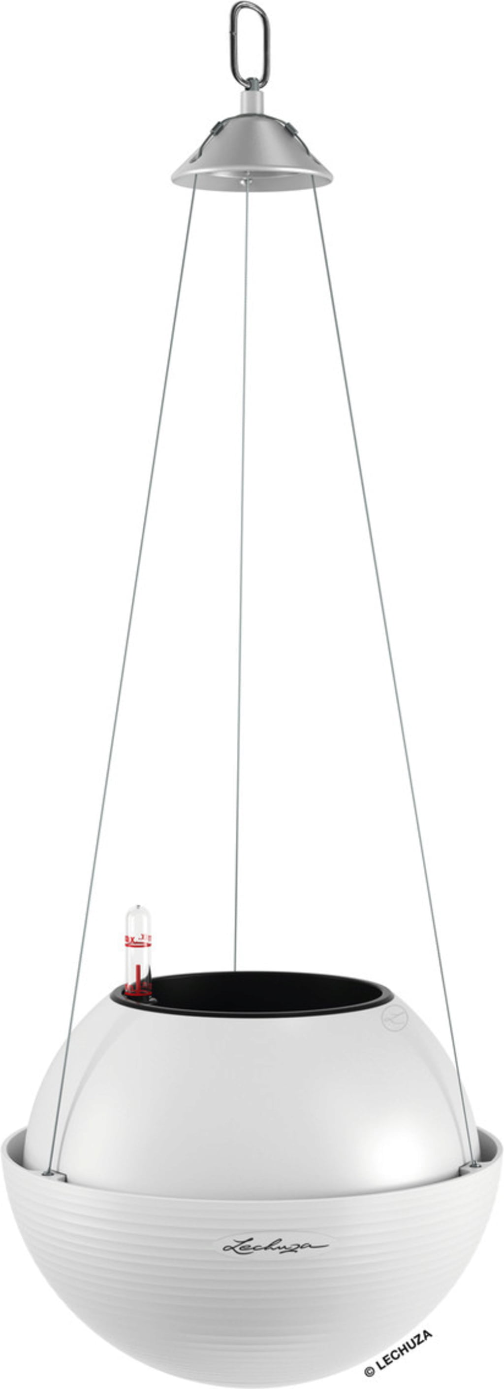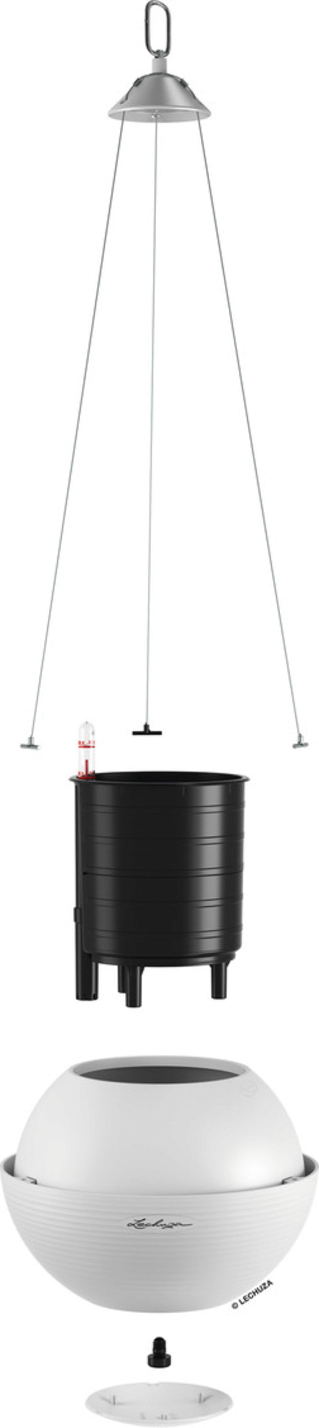 Conteúdo da embalagem: Conjunto "All-in-One", composto por vaso, revestimento removível para plantas, conjunto de irrigação Lechuza & suspensão em aço inoxidável