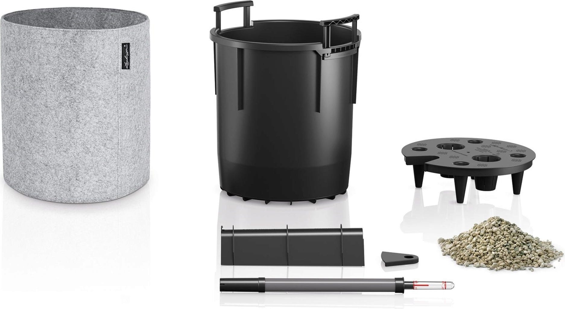 As capas macias Trendcover com um atraente aspeto de feltro proporcionam, com a sua superfície estruturada, uma sensação de habitação única e acolhedora e podem ser combinadas de forma flexível. O conjunto completo inclui também um suporte de plantação funcional com o sistema de irrigação inteligente da Lechuza. Graças às práticas pegas de transporte, as capas podem ser trocadas de forma simples e descomplicada.
