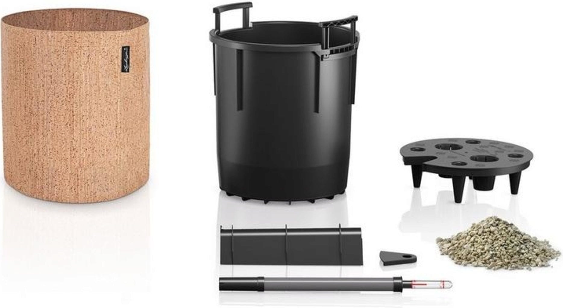 As extraordinárias Trendcover proporcionam uma sensação de bem-estar única e acolhedora com a sua superfície de cortiça de estrutura natural e podem ser combinadas de forma flexível. O conjunto completo inclui também um suporte de plantio funcional com o sistema de irrigação inteligente Lechuza. Graças às práticas pegas de transporte, as coberturas podem ser trocadas de forma simples e descomplicada.