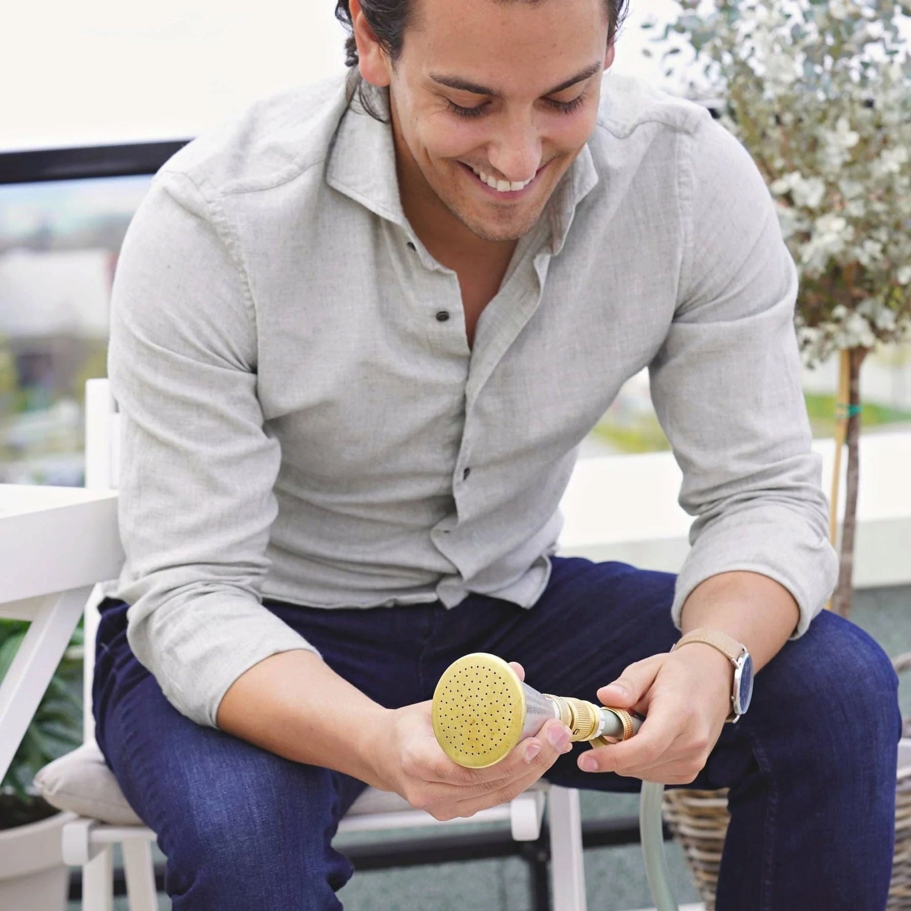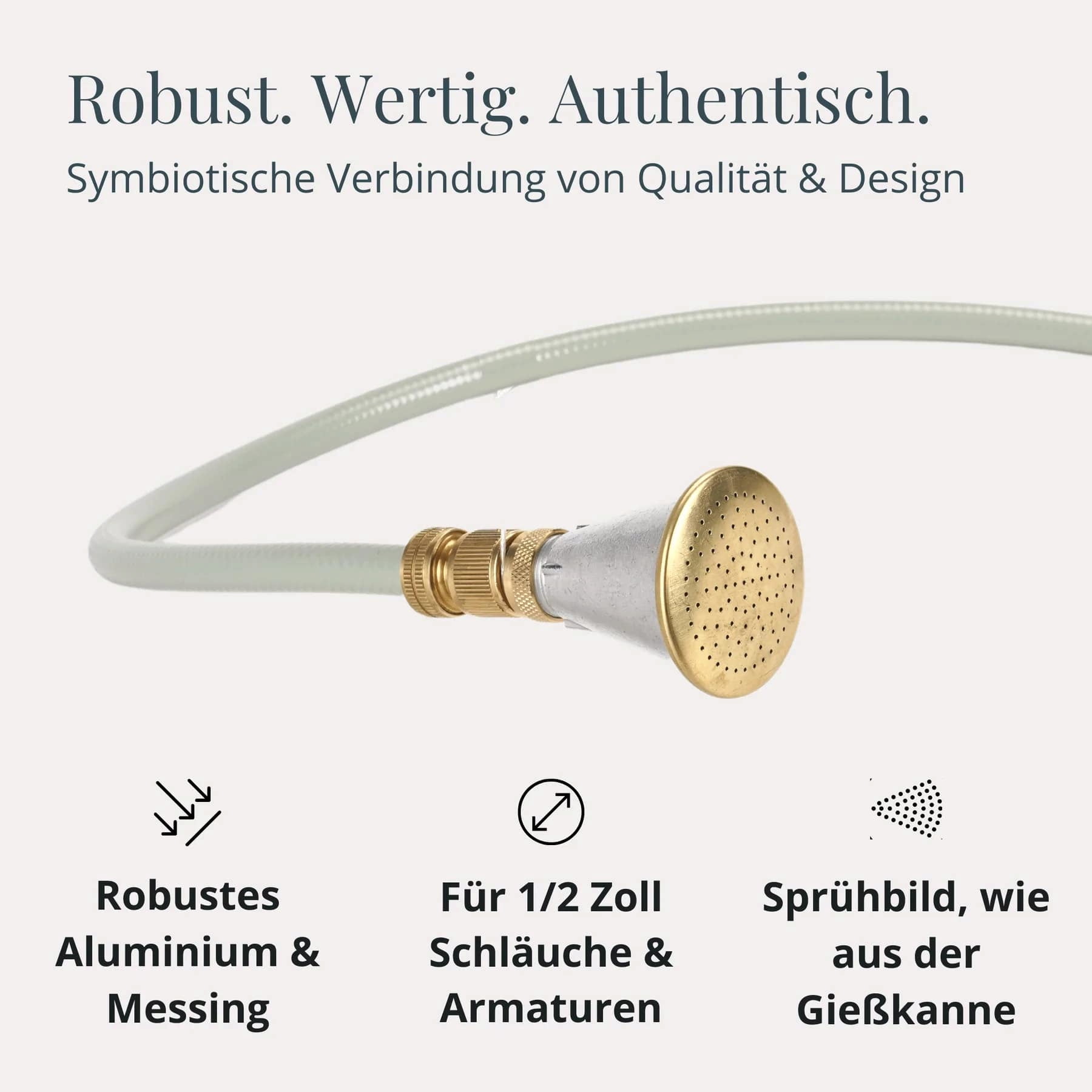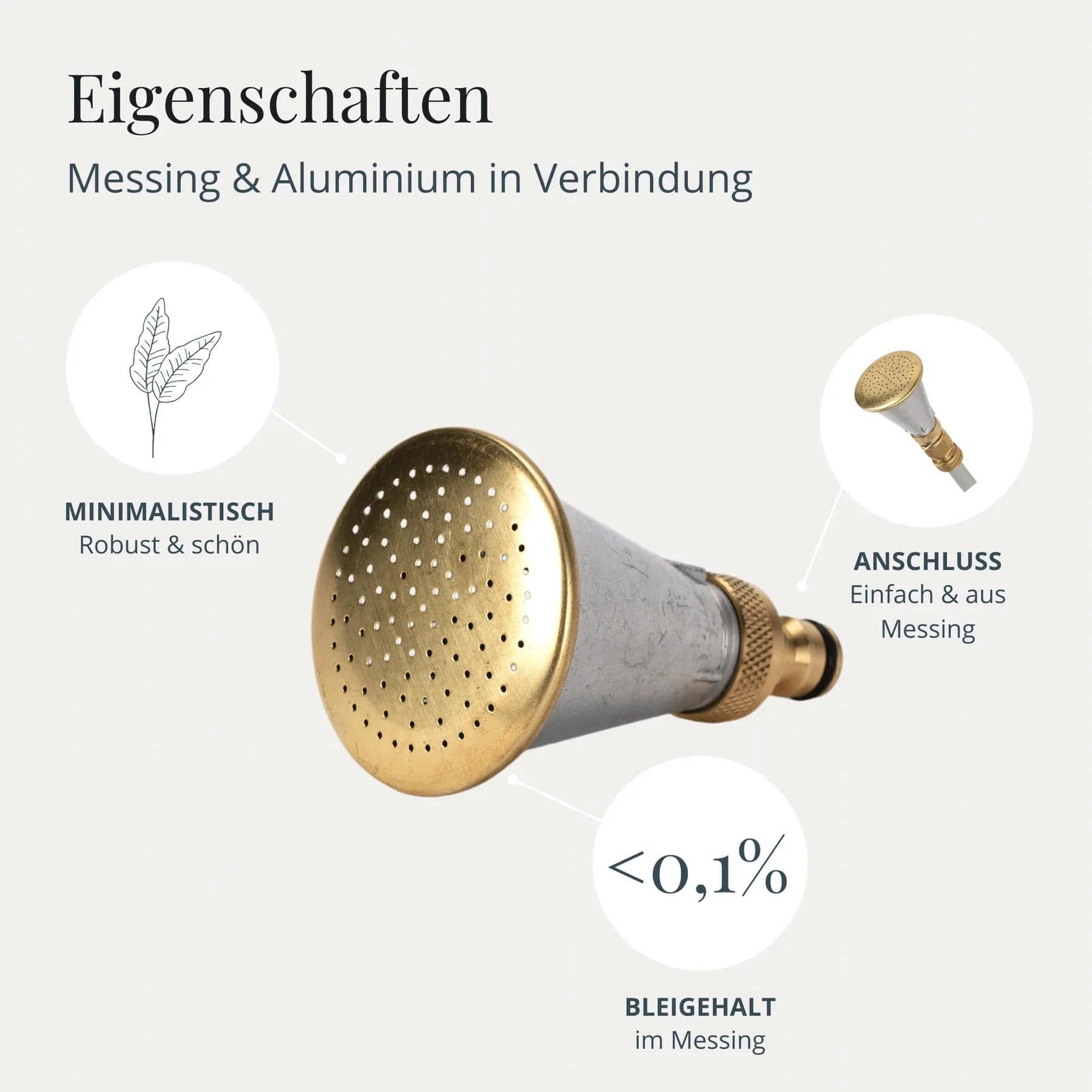 Este chuveiro para flores em latão de alta qualidade é o complemento perfeito para a mangueira de jardim de design da Livlig53 e um must-have para todos os jardineiros amadores que não abdicam do estilo no seu hobby favorito. Graças aos seus inúmeros bicos individuais, proporciona a sensação autêntica de um regador, aliada a um elevado conforto e a uma rega eficiente.