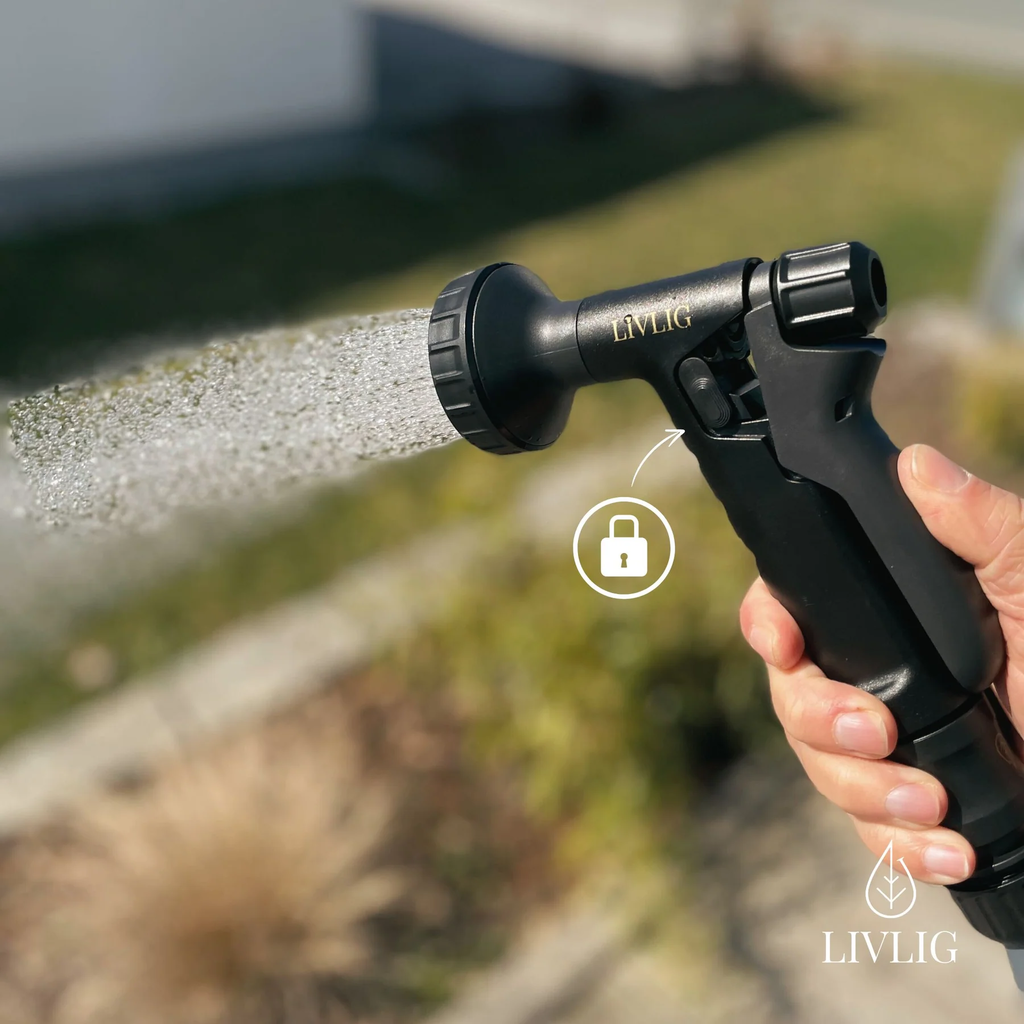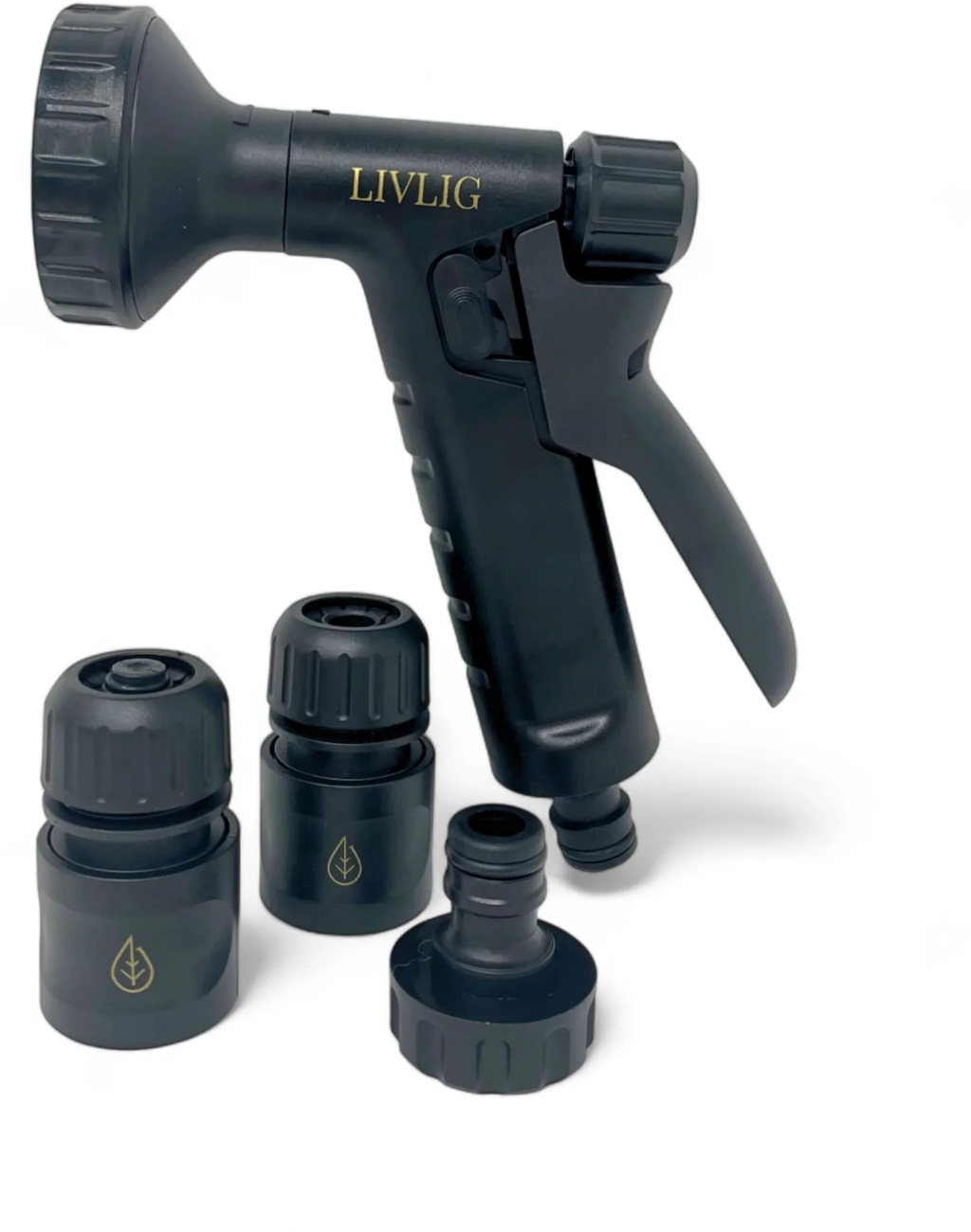 Graças ao botão de gatilho ergonómico, o fluxo de água pode ser ligado e desligado sem esforço, enquanto a regulação contínua da quantidade de água oferece um conforto adicional ao regar. As ligações incluídas são ideais para utilização com qualquer mangueira de jardim de 1/2 polegada.