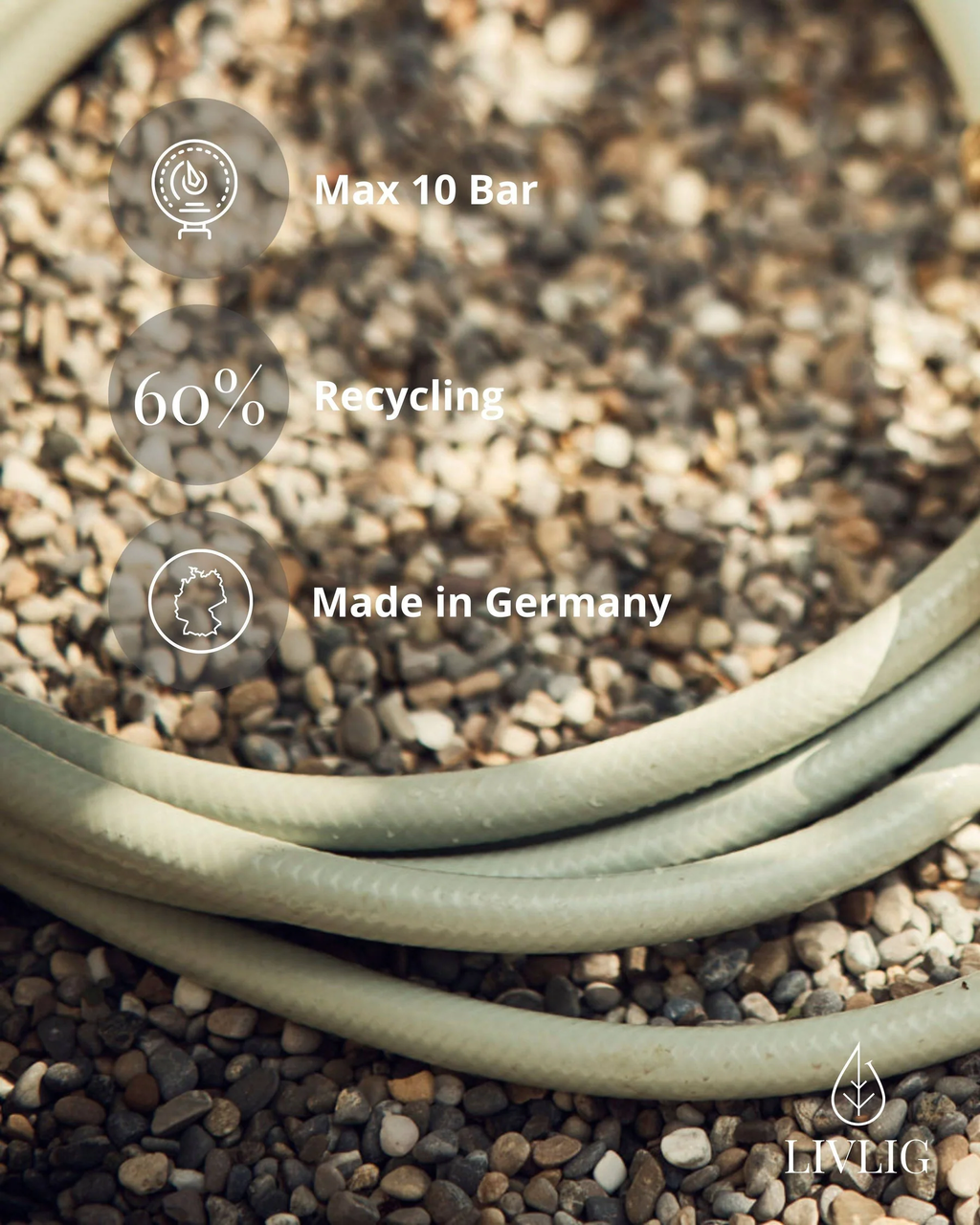 Uma mangueira de jardim é apenas um objeto utilitário comum? De modo algum, como esta elegante mangueira de jardim de design demonstra de forma impressionante. Este acessório de jardim único é um verdadeiro must-have para todos aqueles cujo jardim segue um conceito de design bem pensado e é um reflexo da sua própria personalidade. Com o seu design escandinavo em cores agradavelmente suaves, integra-se harmoniosamente em jardins elegantemente projetados e prova que até uma mangueira de jardim pode ser estética.