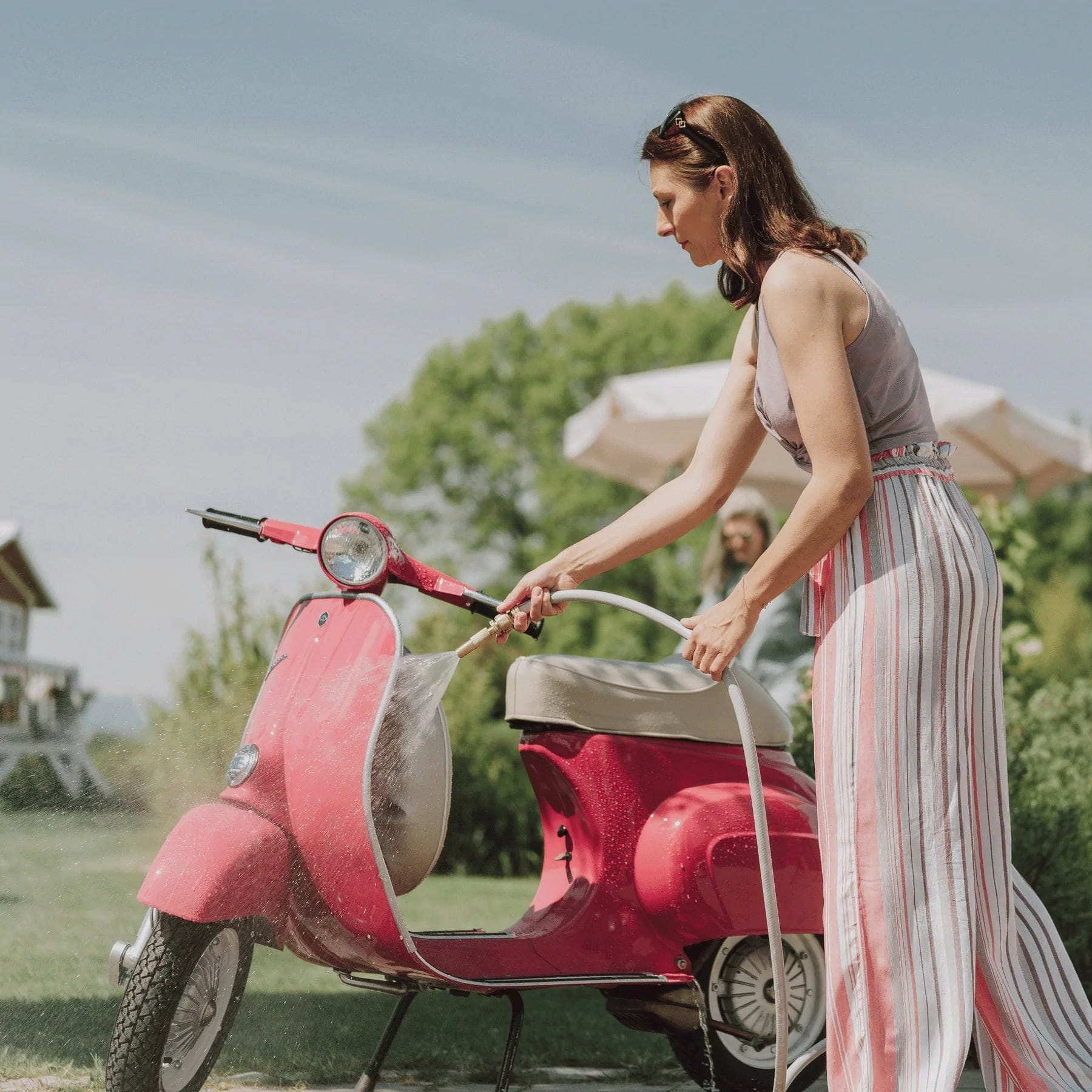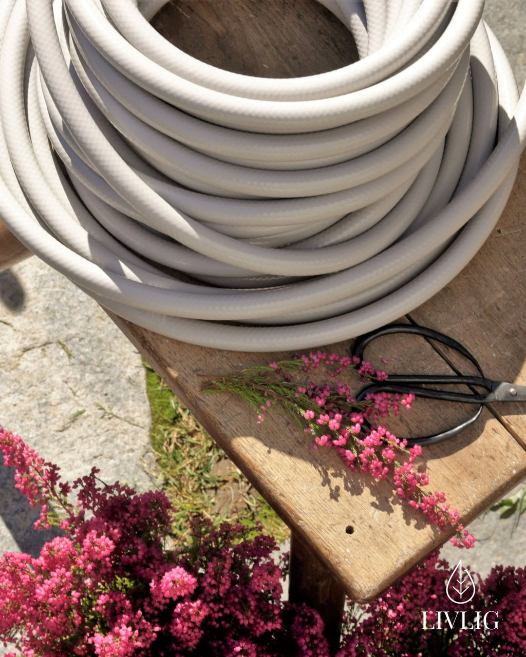 Uma mangueira de jardim é apenas um objeto utilitário comum? De modo algum, como esta elegante mangueira de jardim de design demonstra de forma impressionante. Este acessório de jardim exclusivo é um verdadeiro must-have para todos aqueles cujo jardim segue um conceito de design cuidado e é um reflexo da sua própria personalidade. Com o seu design escandinavo em cores suaves e agradáveis, integra-se harmoniosamente em jardins de estilo e prova que até uma mangueira de jardim pode ser estética.