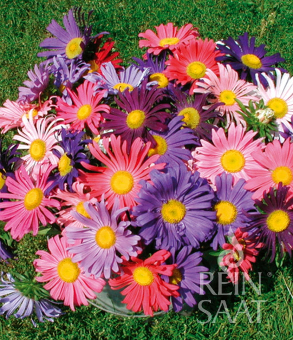 Esta mistura de Áster-da-China encanta com flores simples, de altura média, em tons vibrantes de branco, rosa, vermelho e violeta. Estas flores também são excelentes para corte - para isso, as flores devem estar totalmente abertas.