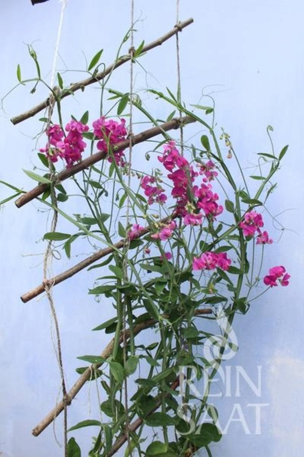 Esta trepadeira perene produz inúmeras flores cor-de-rosa vibrantes de junho a outubro.