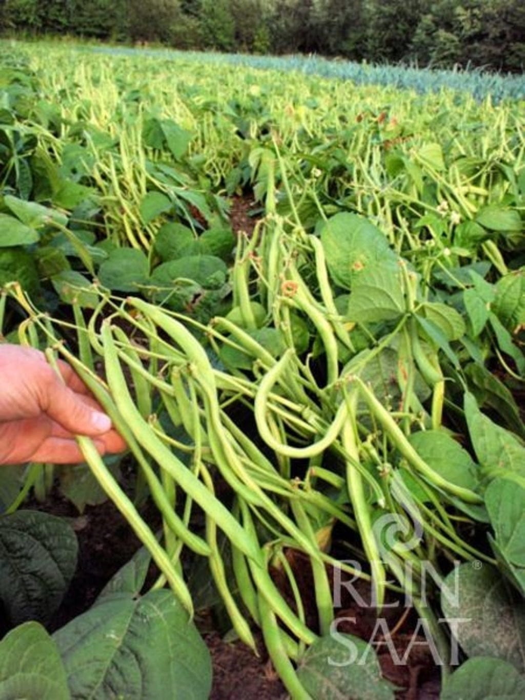 Este feijão rasteiro robusto e de maturação precoce impressiona pelo seu belo crescimento vertical e pelos elevados rendimentos. Produz vagens de cor verde-escura, redondas e sem fios, fáceis de colher, uma vez que se situam acima das folhas (tipo "Gluckentyp").