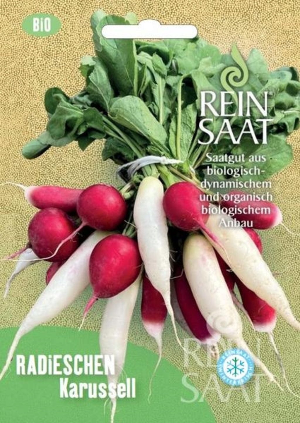 O Radieschen Karussell oferece uma mistura harmoniosa de rabanetes coloridos com um sabor aromático e suavemente picante. Graças ao seu crescimento rápido e robustez, são ideais para colheitas contínuas e consumo fresco – perfeitos para o jardim, varanda ou venda direta.