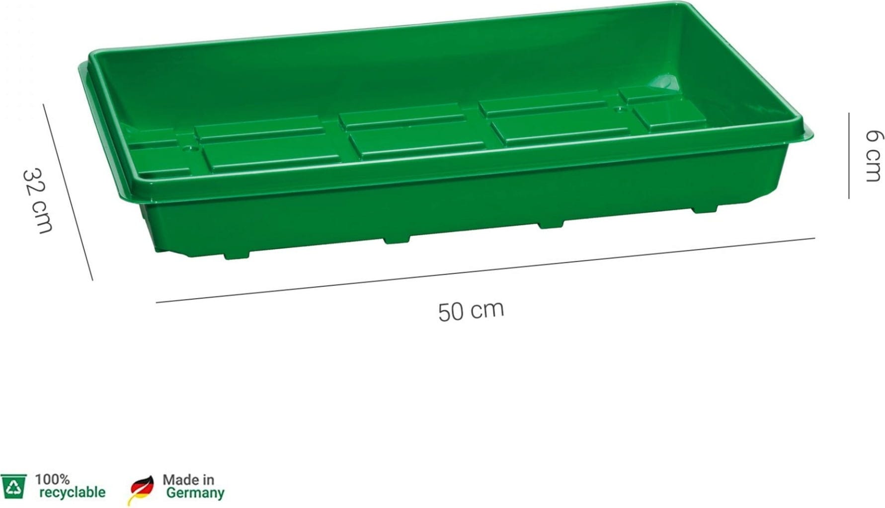 Esta bandeja de cultivo estável e duradoura pode ser enchida diretamente com substrato e utilizada para a propagação de plantas. Pode combiná-la com tabuleiros de vasos e coberturas no tamanho 50 x 32 cm. Além disso, esta bandeja também é excelente como bandeja de transporte e de trabalho.